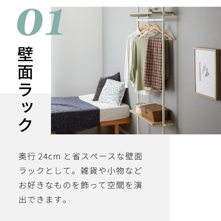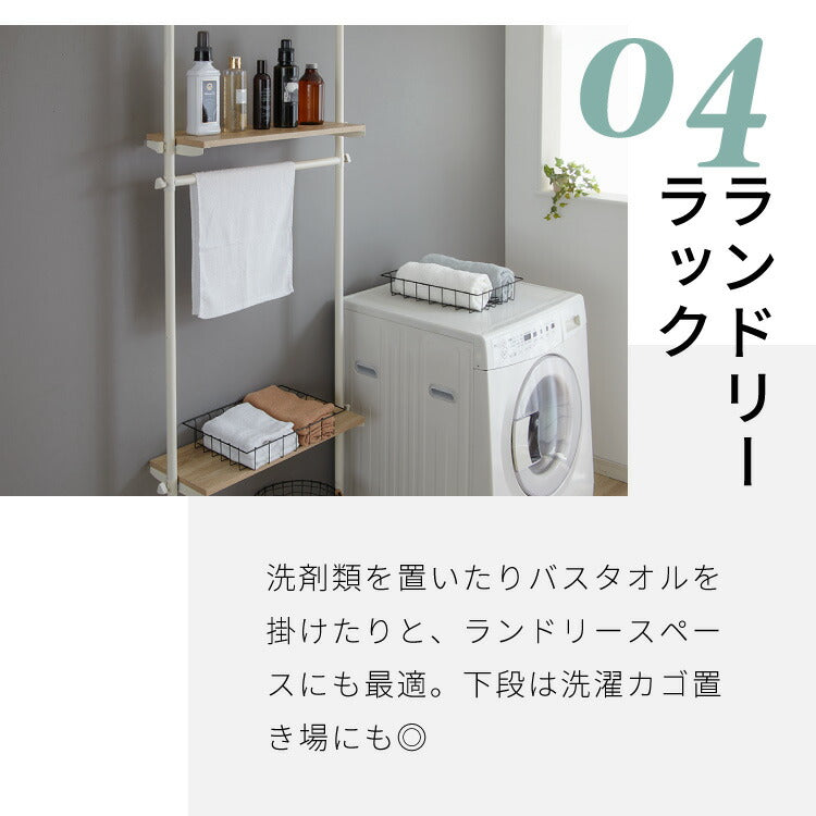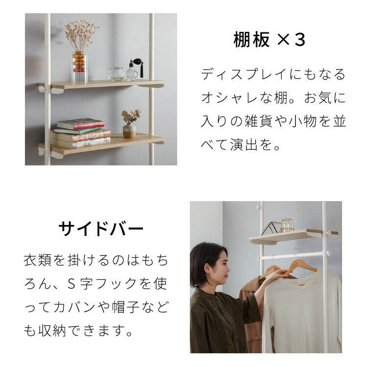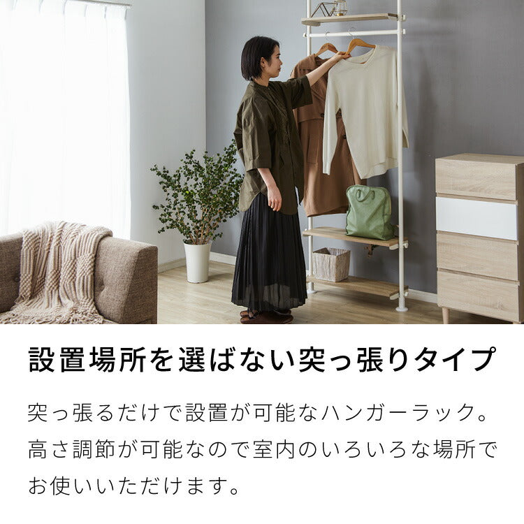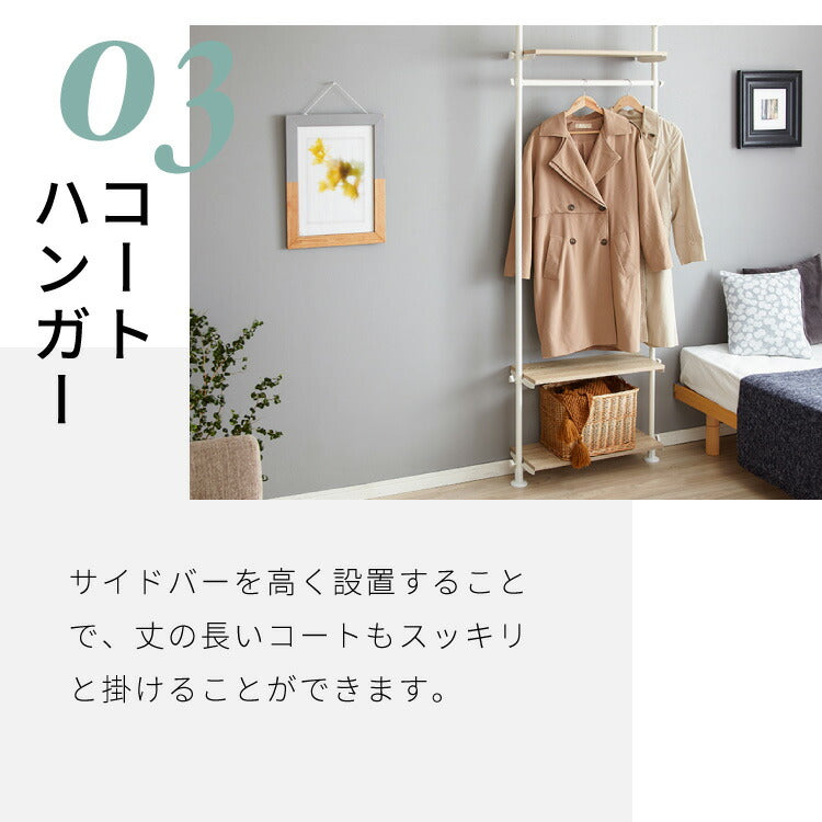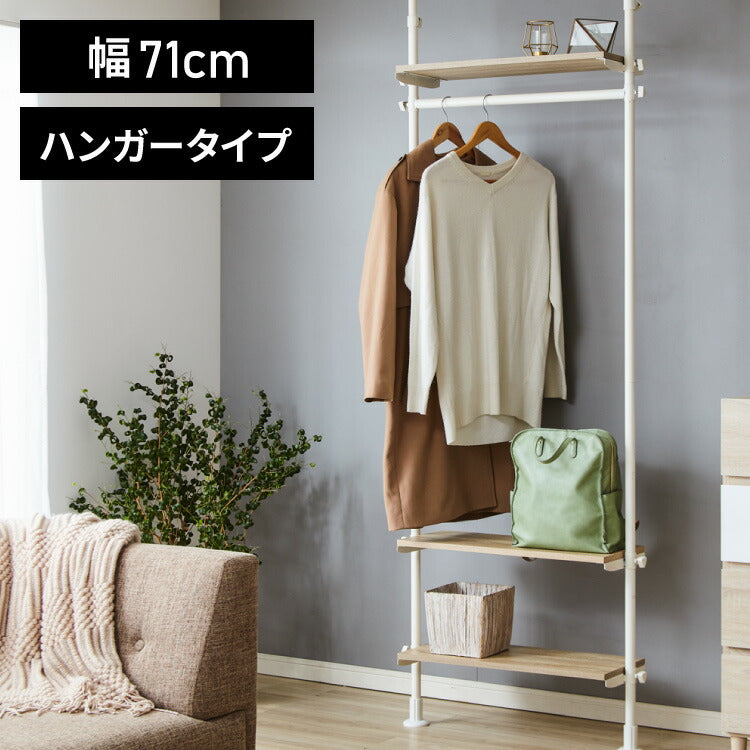 突っ張り棚 おしゃれ 3段タイプ ハンガーバー 幅71 奥行24 木目調 スリム リビング キッチン ランドリー 北欧 玄関 モダン つっぱり棚 ツッパリ棚 壁面収納 突っ張り 収納 突っ張りラック
