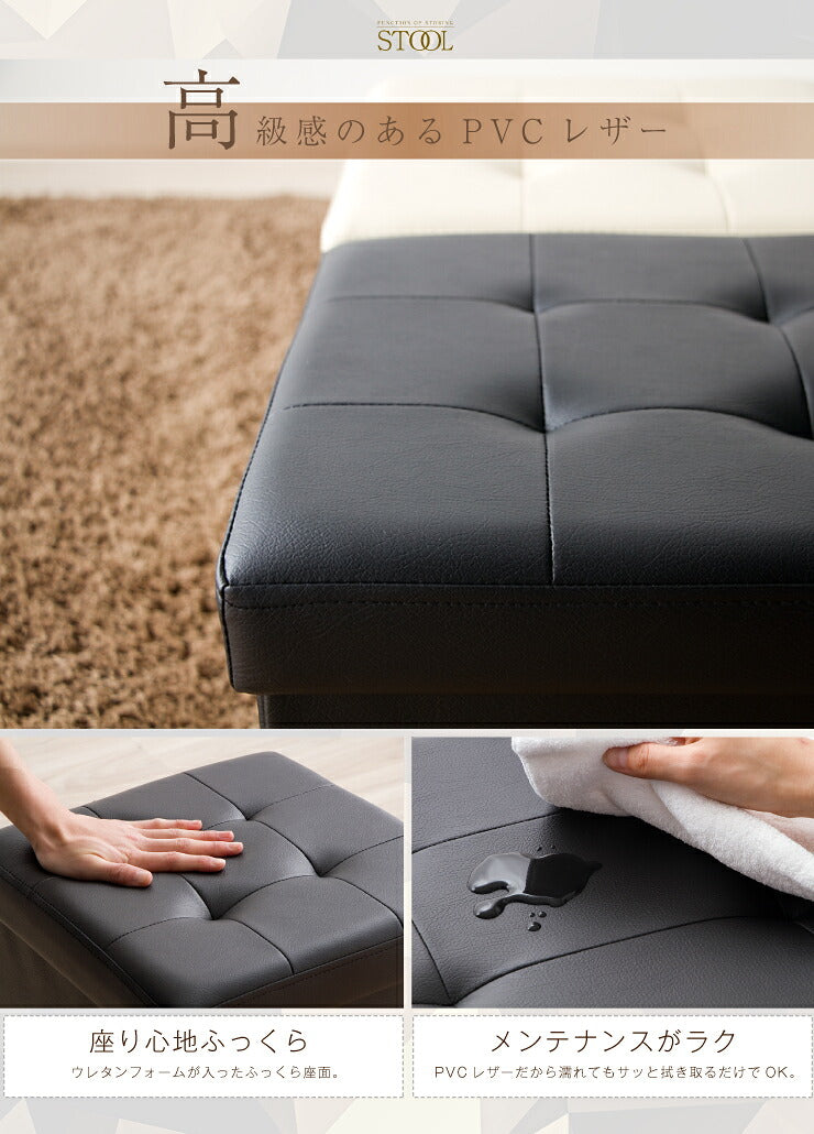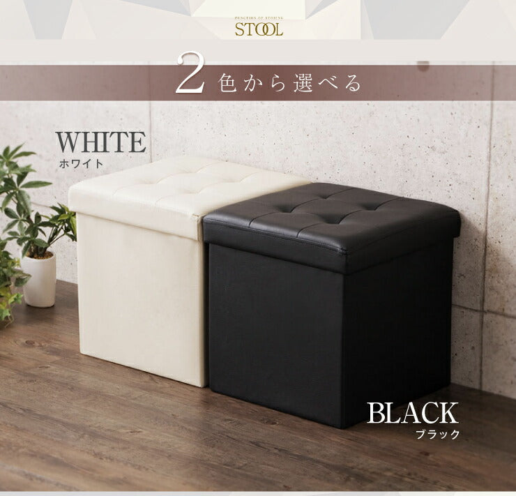 正方形 同色2個セット 収納 スツール ボックス 収納スツール 収納ボックス 折りたたみ 折り畳み コンパクト レザー