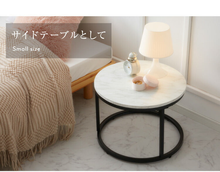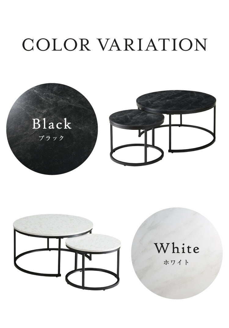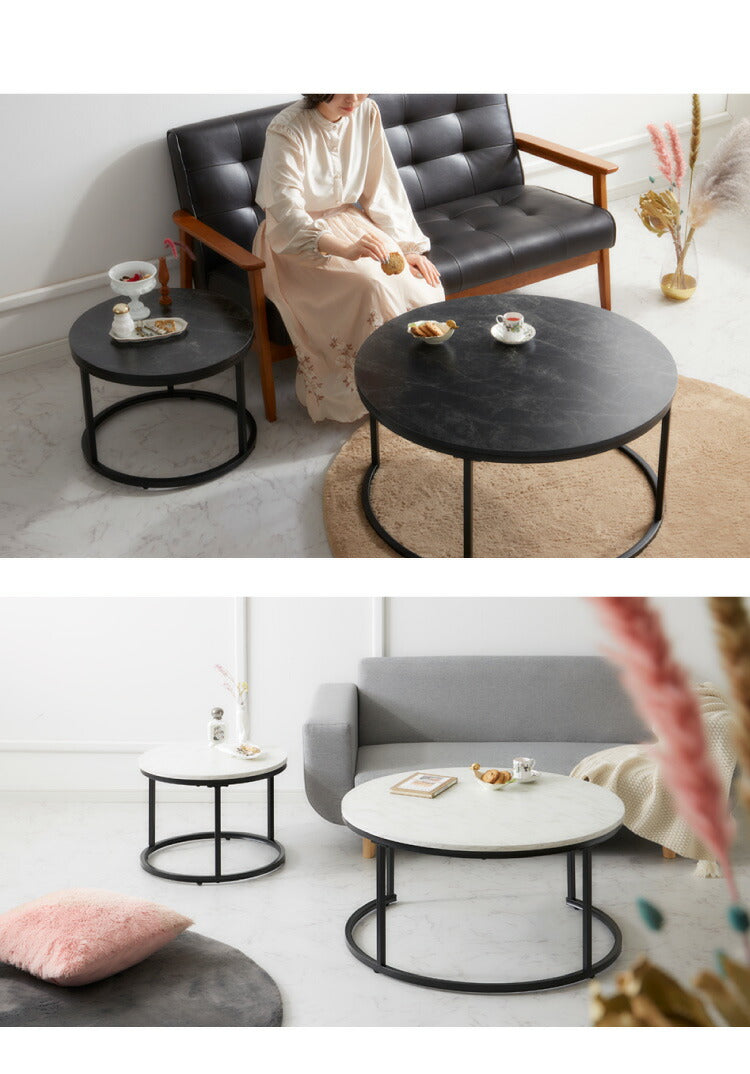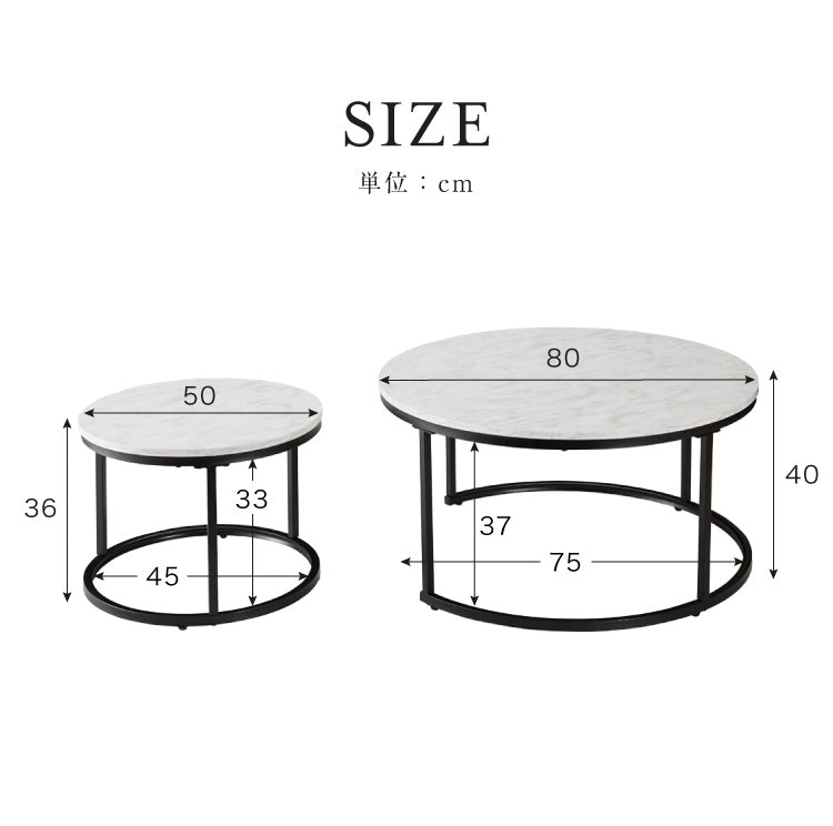 ネストテーブル 大理石調 直径80cm テーブル ローテーブル 2個セット コンパクト センターテーブル コーヒーテーブル リビングテーブル 大理石調 テレワーク