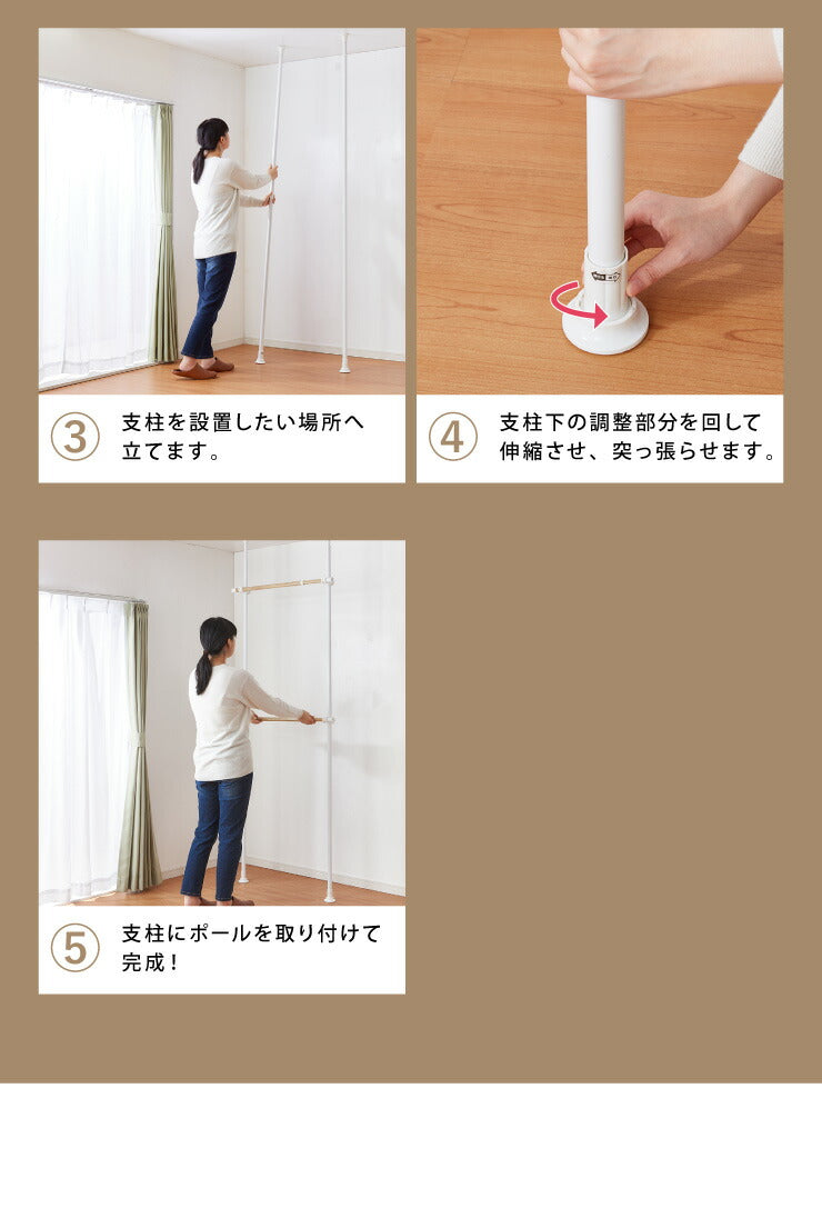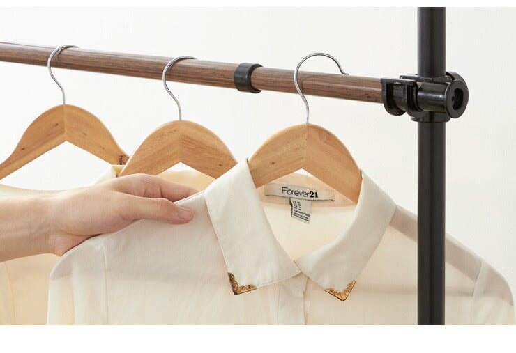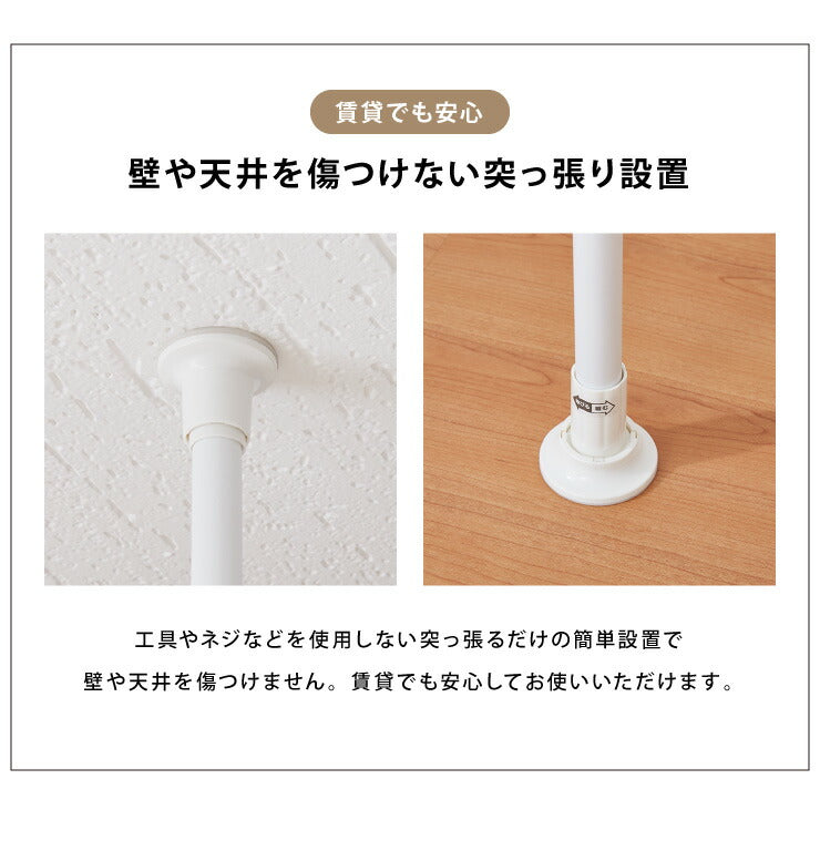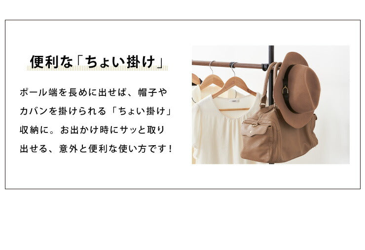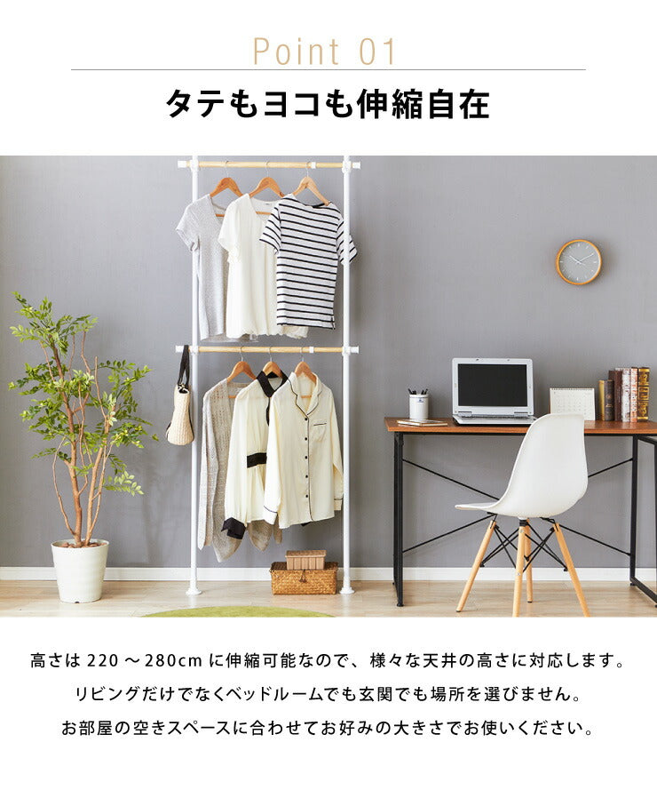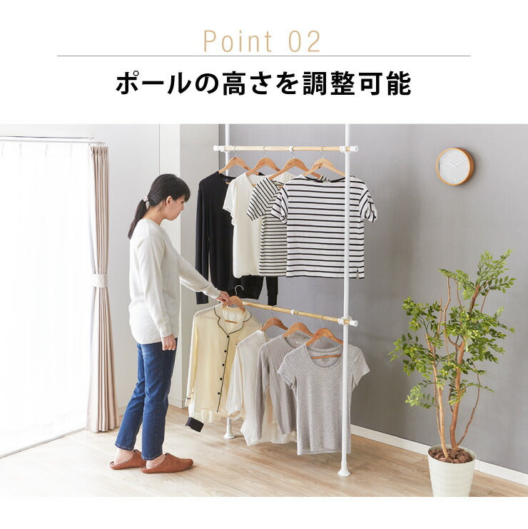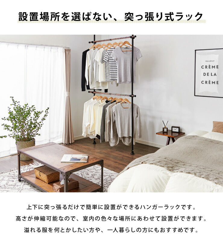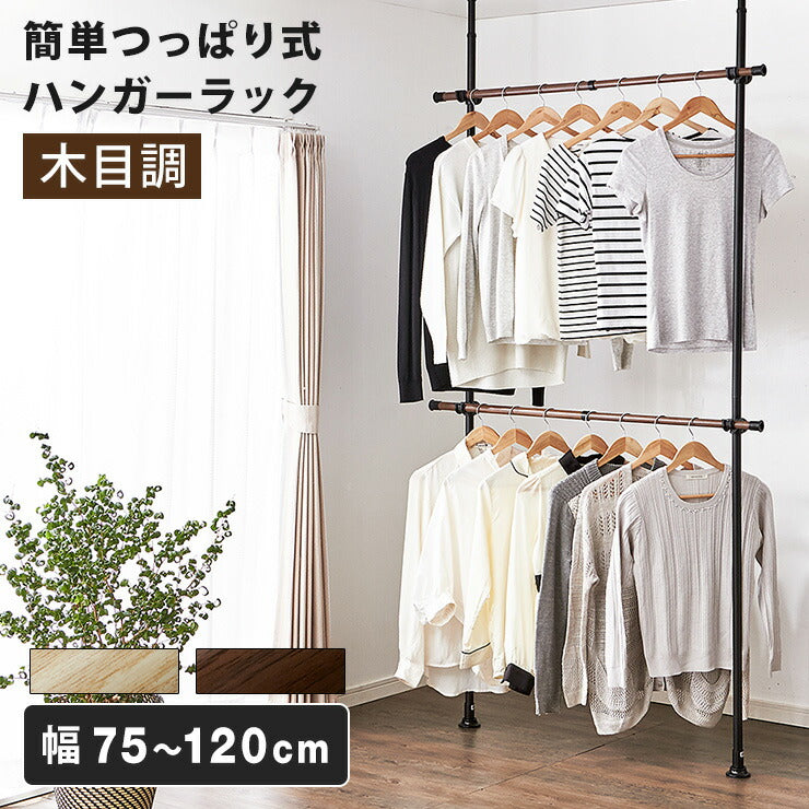 ハンガーラック 天井突っ張り式 木目調 2段 幅伸縮式 最大幅120cm つっぱりラック クローゼット シェルフ 伸縮 収納 ラック