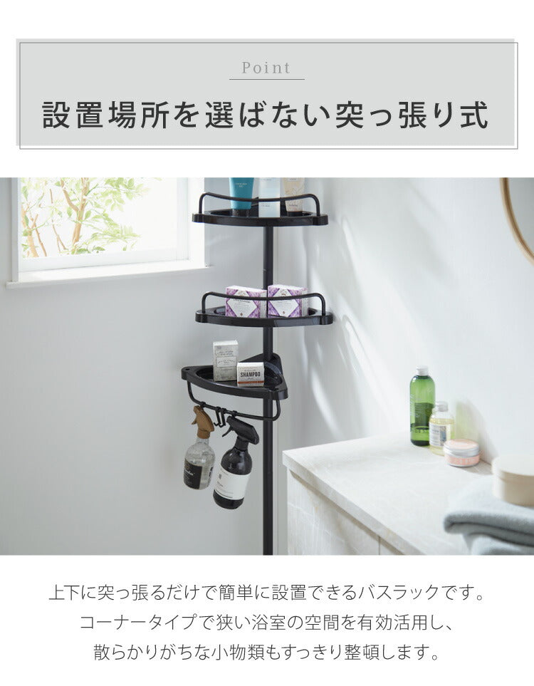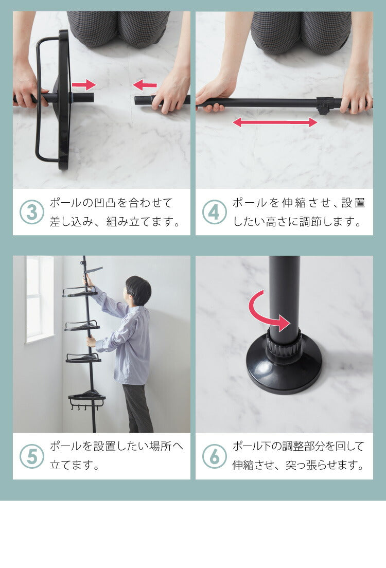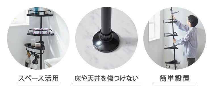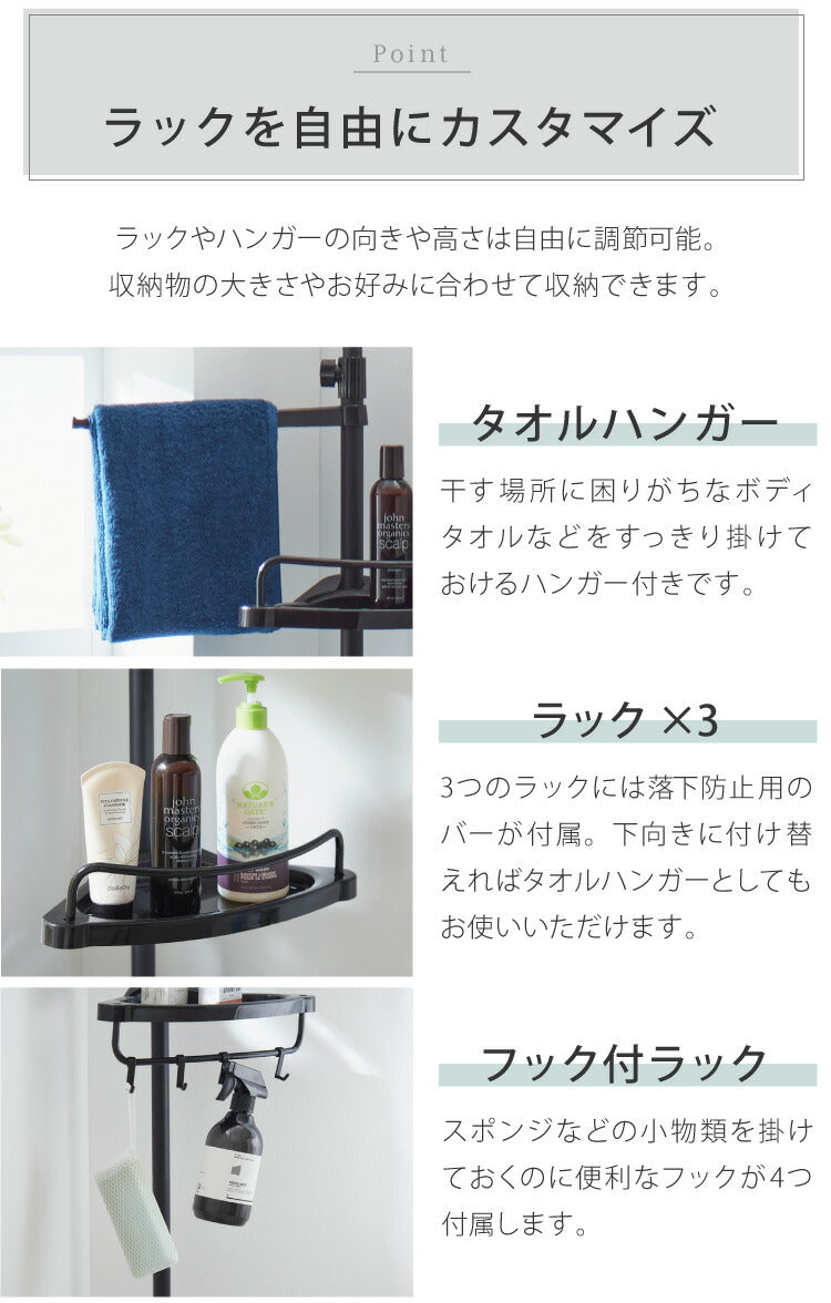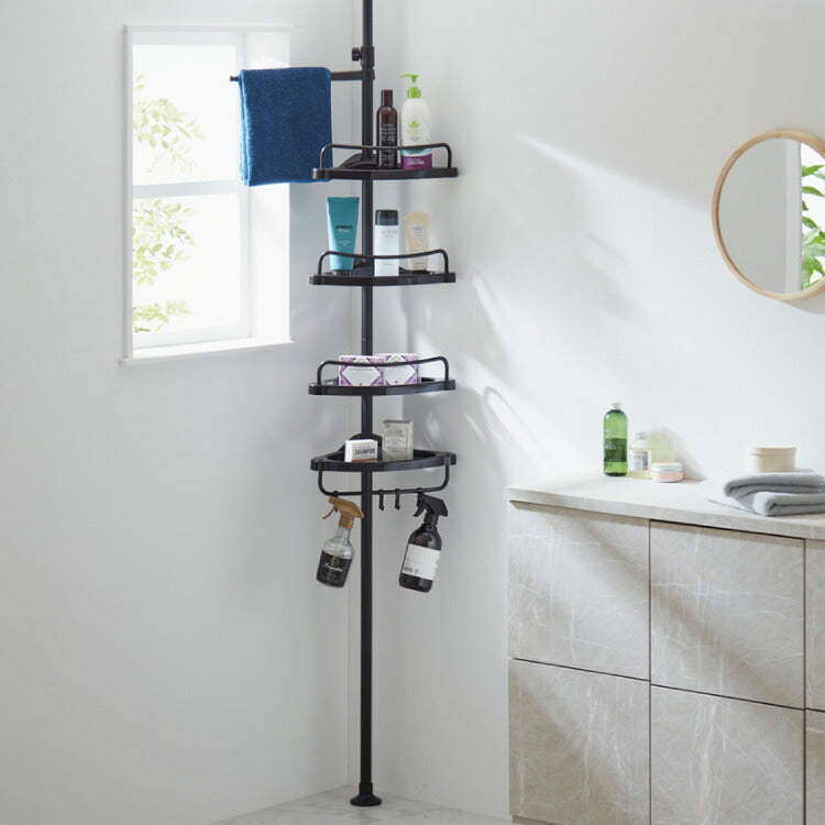 突っ張り コーナーラック お風呂ラックスタンド 4段 タオルハンガー付き つっぱり 浴室 お風呂 190~240cm つっぱり棒 バスラック シャンプーラック お風呂 つっぱり棚