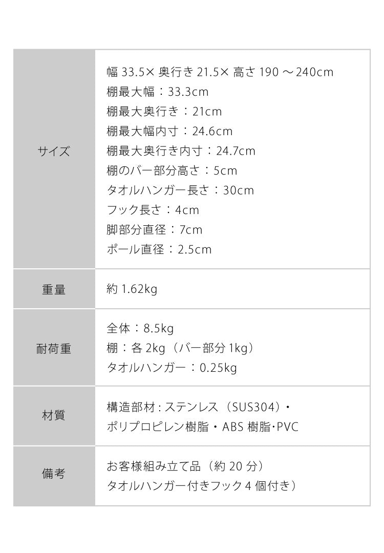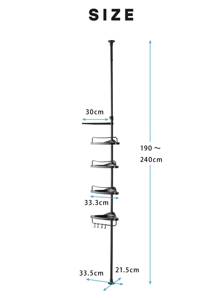 ・突っ張り式で、190〜240cmの高さで調整可能です。