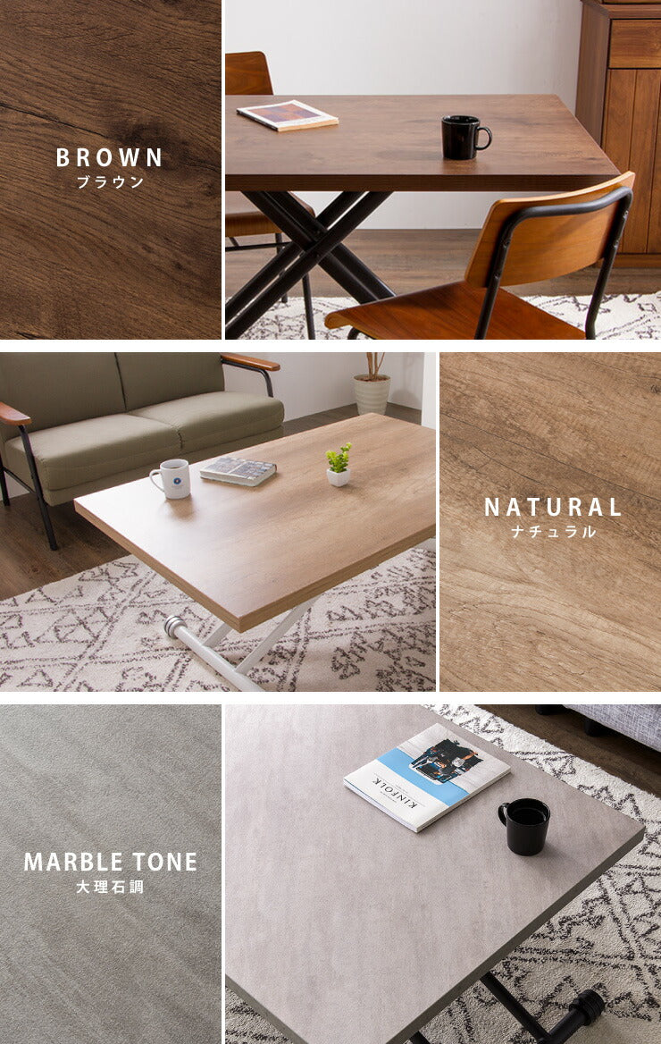 テーブル 昇降式 ガス圧昇降式テーブル 120×80cm ブラウン ナチュラル 大理石調 おしゃれ シンプル 昇降テーブル ダイニングテーブル センターテーブル ローテーブル リビングテーブル デスク 高さ調節