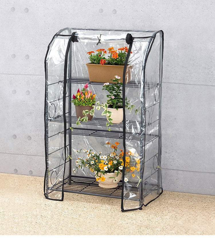 ガーデンラック カバー付き 115 3段 棚板自由自在 プランタースタンド 組み立て簡単 工具不要 ビニール温室棚 3段ラック ビニールハウス フラワーラック ガーデンハウス フラワーハウス ラック
