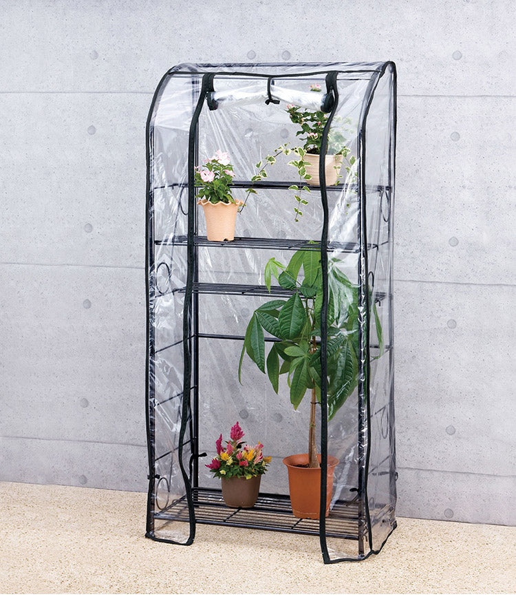 ガーデンラック カバー付き 150 4段 棚板自由自在 プランタースタンド 組み立て簡単 工具不要 ビニール温室棚 4段ラック ビニールハウス フラワーラック ガーデンハウス フラワーハウス ラック