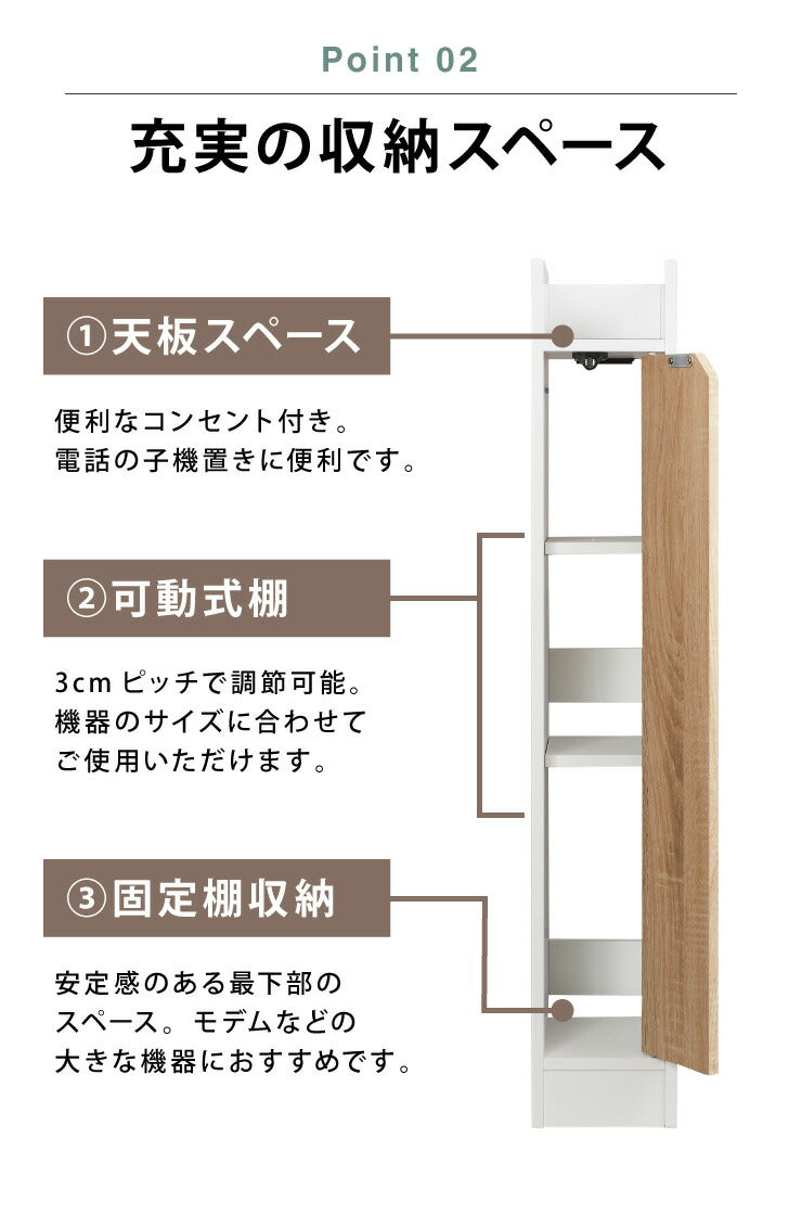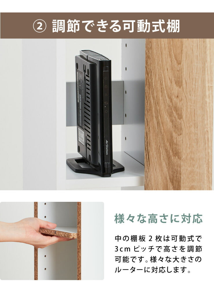 ・設置場所の関係で意外と置き場所に困るWi-Fiルーターをすっきり収納できます。