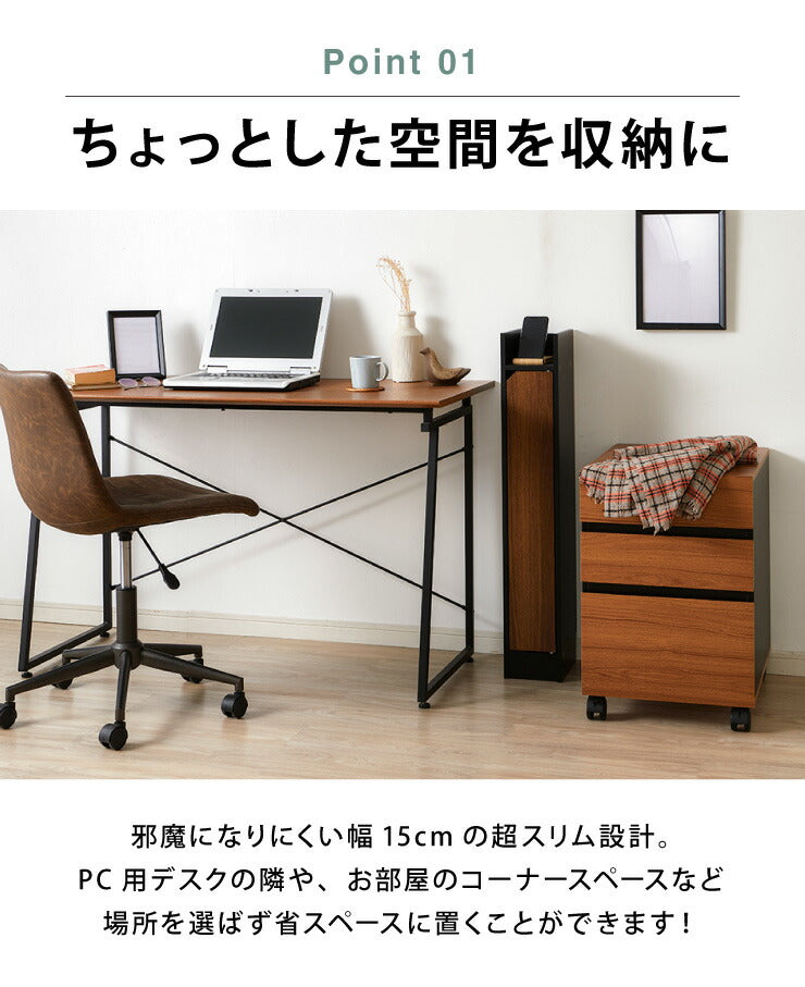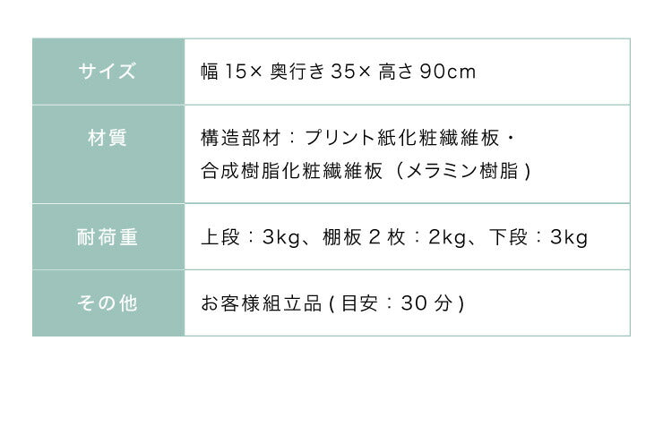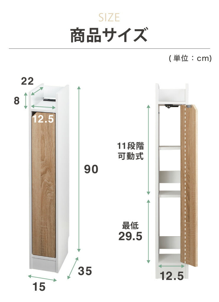 ・幅が15cmと薄い収納棚なので、邪魔になりにくい。