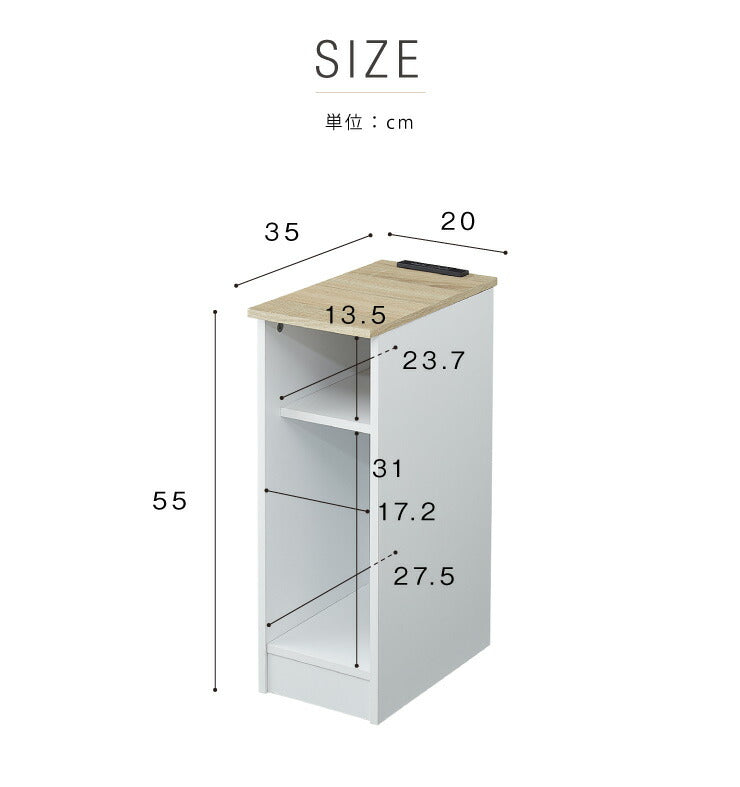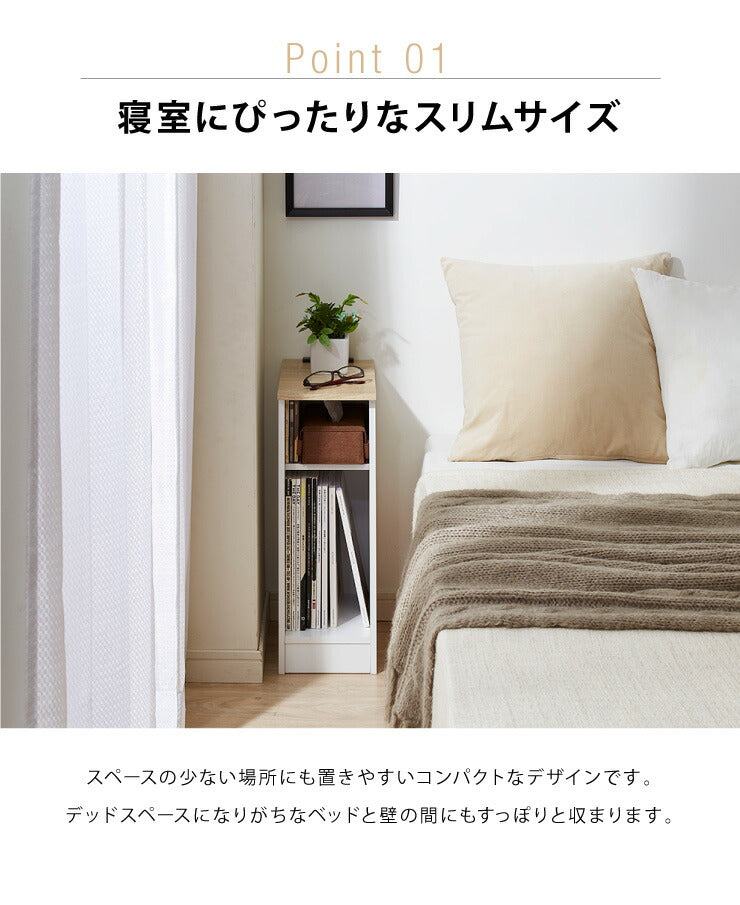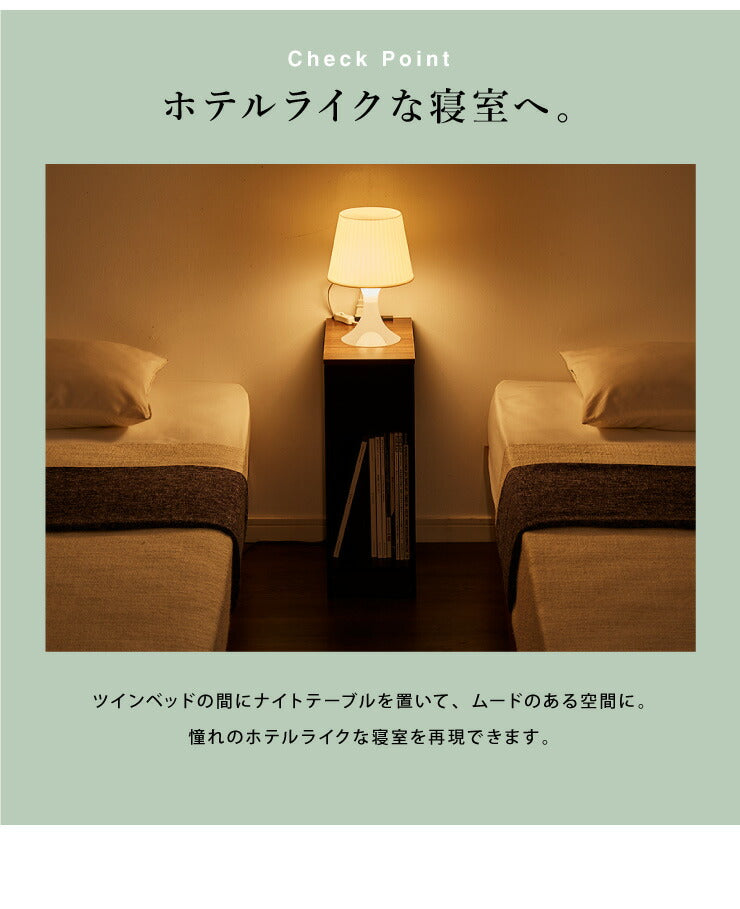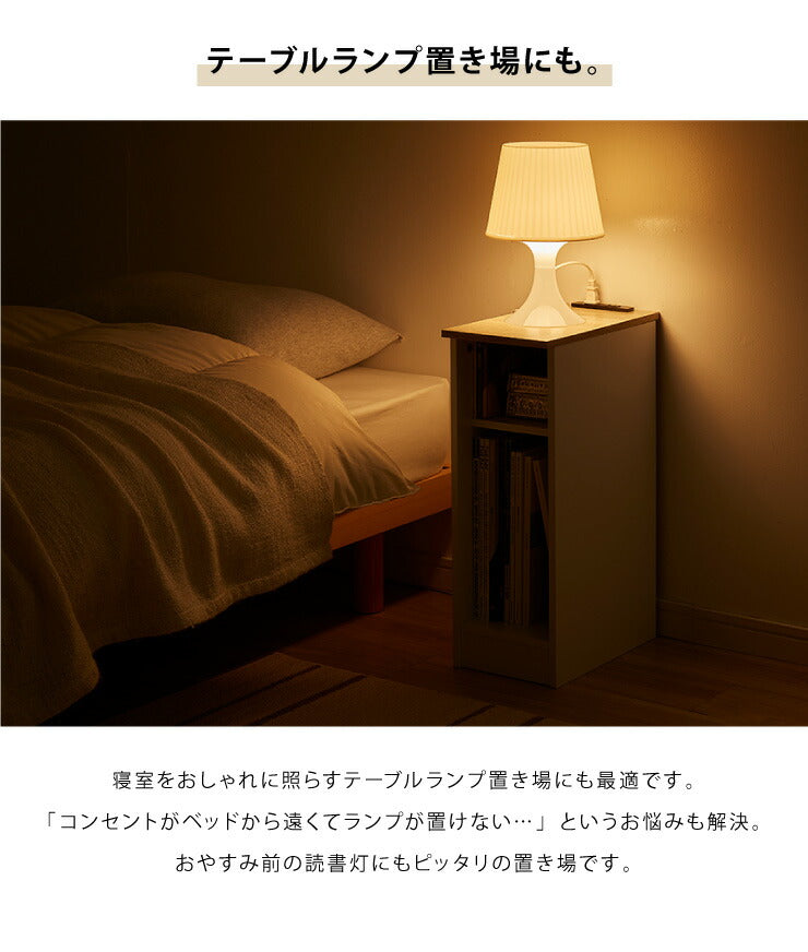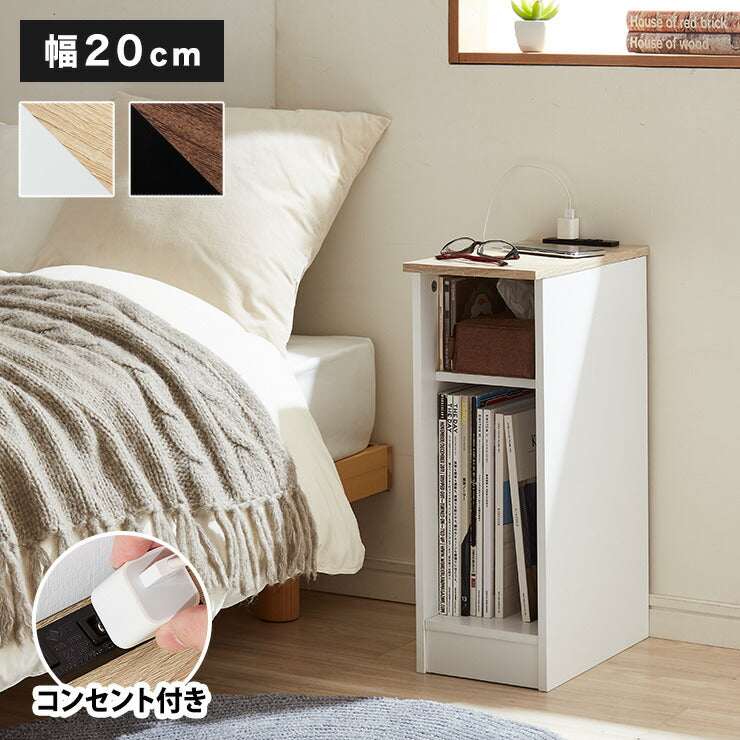 コンセント付き サイドテーブル オープンタイプ 幅20cm テーブル ナイトテーブル 収納 ベッド コンパクト おしゃれ スリム 木目