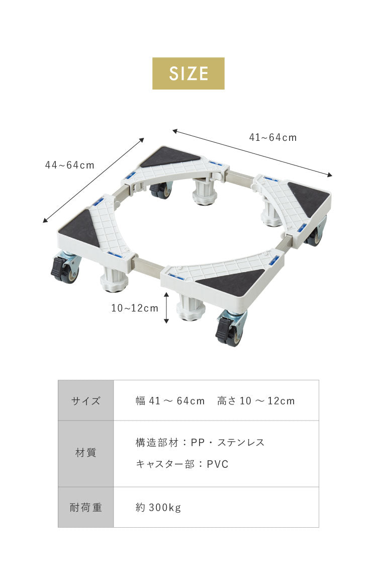 ・ドラム式洗濯機にも対応した洗濯機スライド台です。