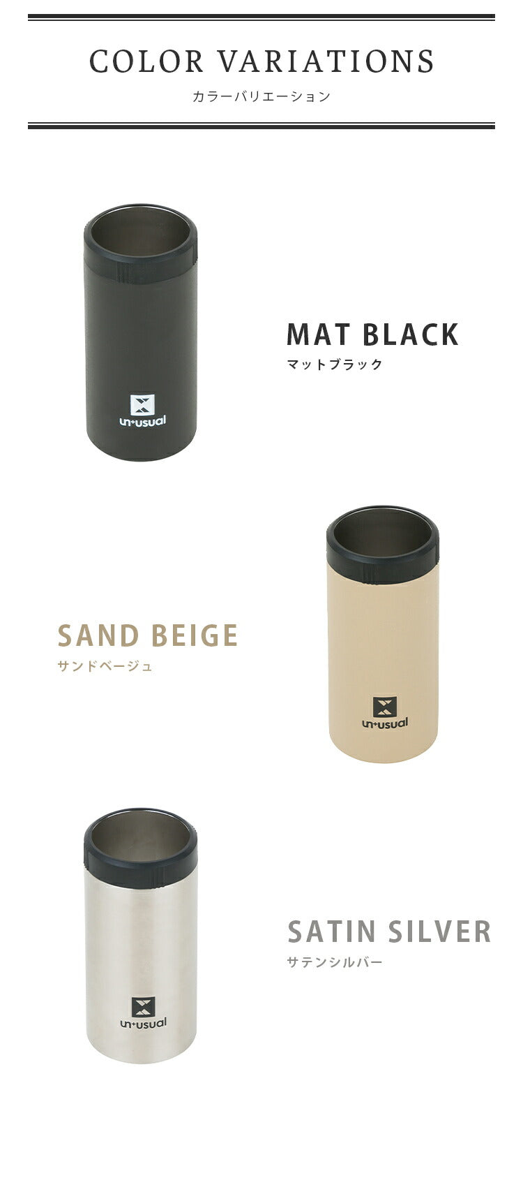 ドリンクホルダー UN+USUAL アニュージュアル 保冷缶ホルダー 500ml 真空二重構造 アウトドア キャンプ お出掛け 水筒 登山 アウトドア雑貨 缶 ビール