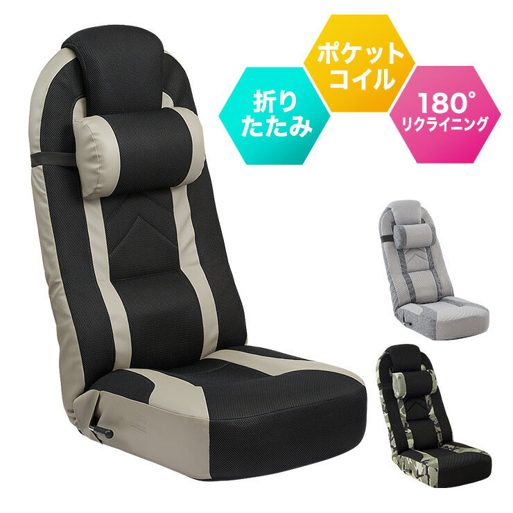 ゲーミング座椅子 スーパーハイバック レバー式 無段階 リクライニング 14段階 ヘッドギア ハイバック 折り畳み 1人掛け メッシュ ポケットコイル おしゃれ リラックス ゲーミングチェア 座椅子 座いす 座イス テレワーク 在宅勤務