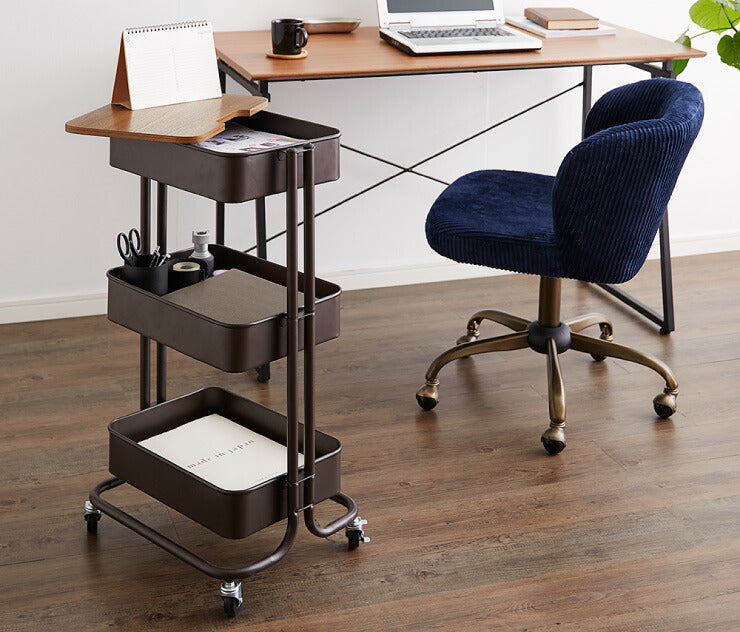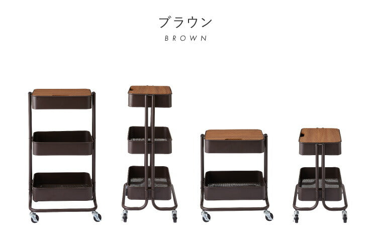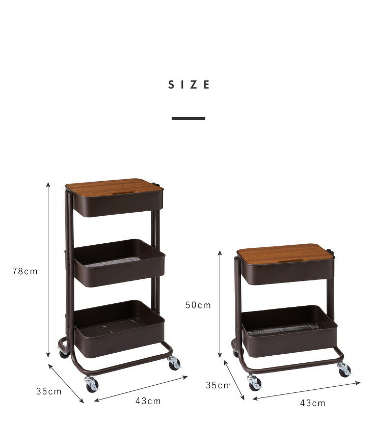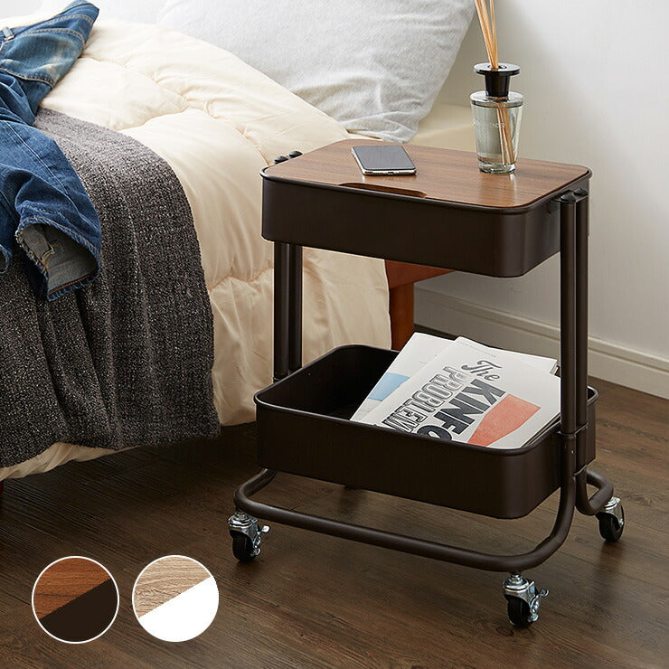 ヴィンテージ調 天板付きキャスターワゴン 2段