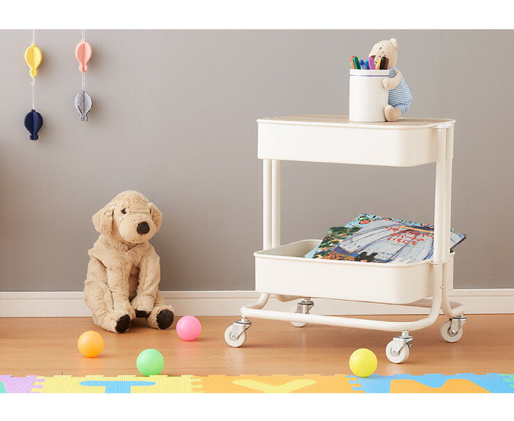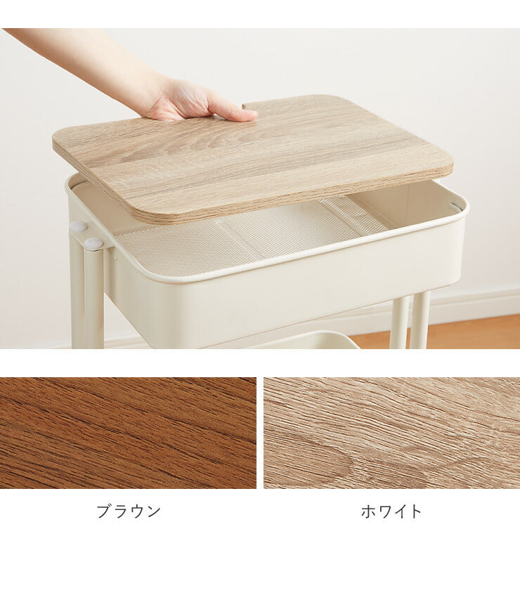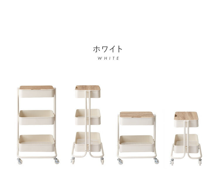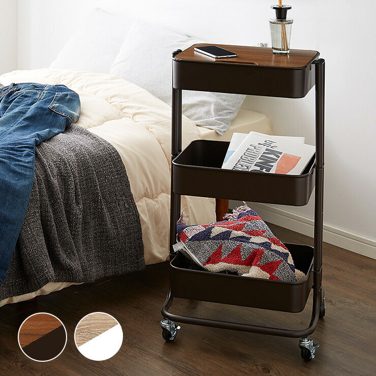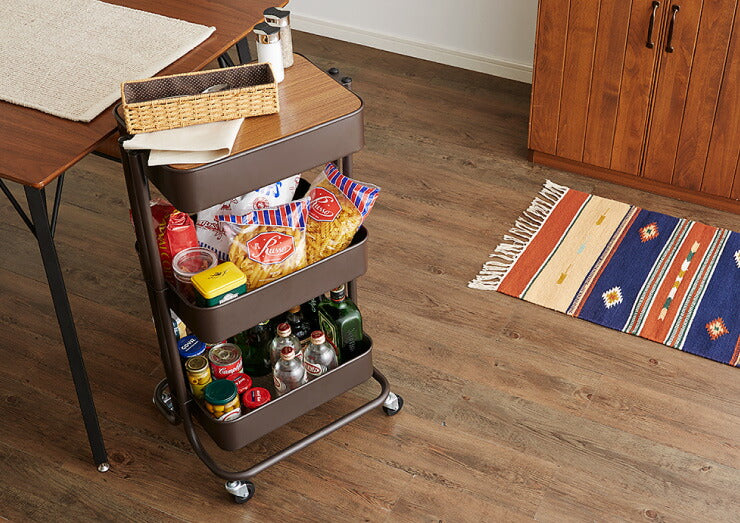 ヴィンテージ調 天板付きキャスターワゴン 3段