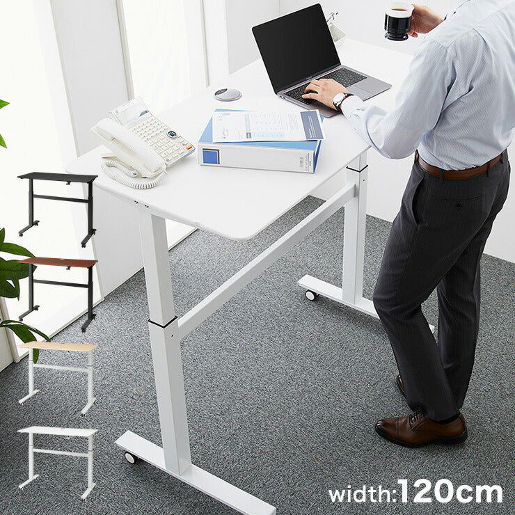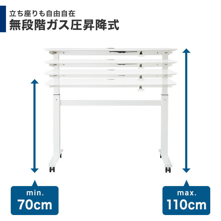 スタンディングデスク 昇降式テーブル 幅120cm 昇降デスク ワンタッチ昇降 キャスター付き オフィスデスク パソコンデスク PCデスク ガス圧昇降デスク テレワーク 在宅勤務 デスク 机 オフィス 事務机 高さ調整 幅120