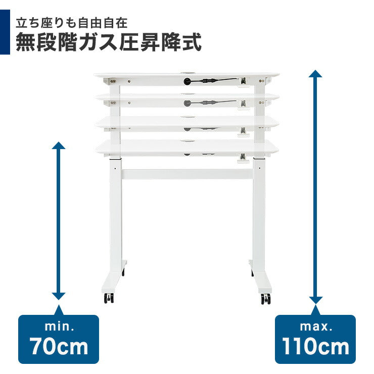 スタンディングデスク 昇降式テーブル 幅90cm 可動式 高さ調節 昇降デスク ワンタッチ昇降 キャスター付き オフィスデスク パソコンデスク PCデスク ガス圧昇降デスク テレワーク 在宅勤務 デスク 机 オフィス 事務机 幅90