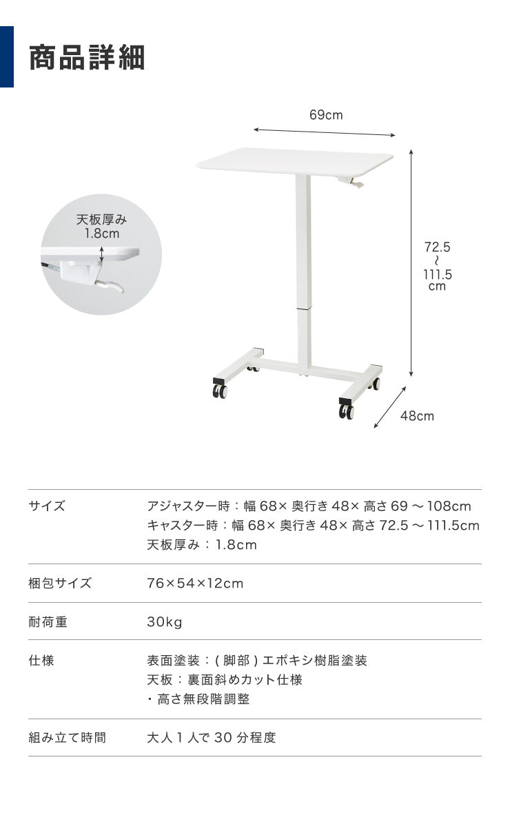 キャスター時:幅68×奥行き48×高さ72.5〜111.5cm