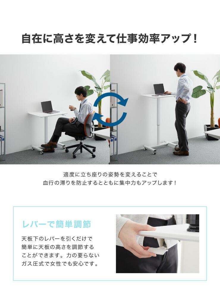 ガス圧マルチデスク 昇降式テーブル 幅69cm 可動式 高さ調節 デスク オフィスデスク スタンディングデスク パソコンデスク PCデスク オフィス 幅69 昇降 テレワーク