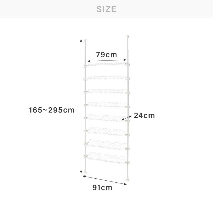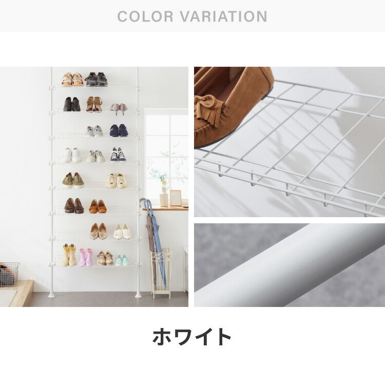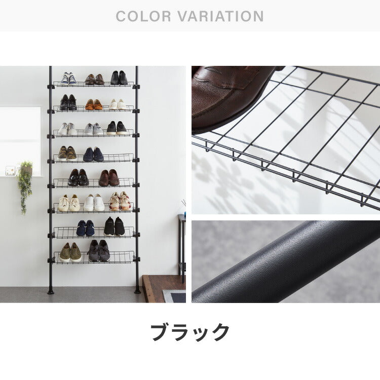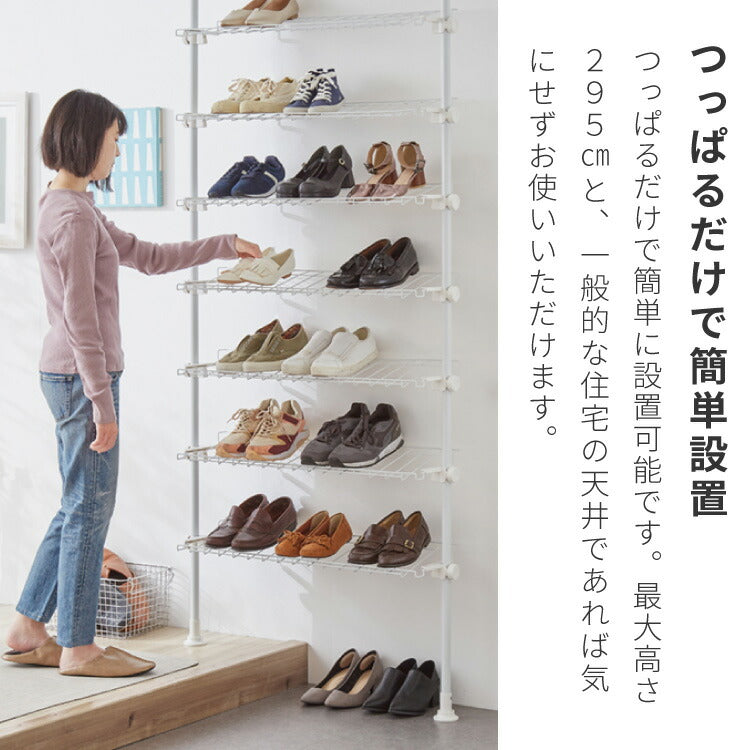 突っ張り シューズラック 8段 スリム 省スペース 棚自由自在 下駄箱 スリム 玄関収納 薄型 靴 靴箱 靴ラック 省スペース 壁面収納 つっぱり 靴収納棚 突っ張り シューズ ラック