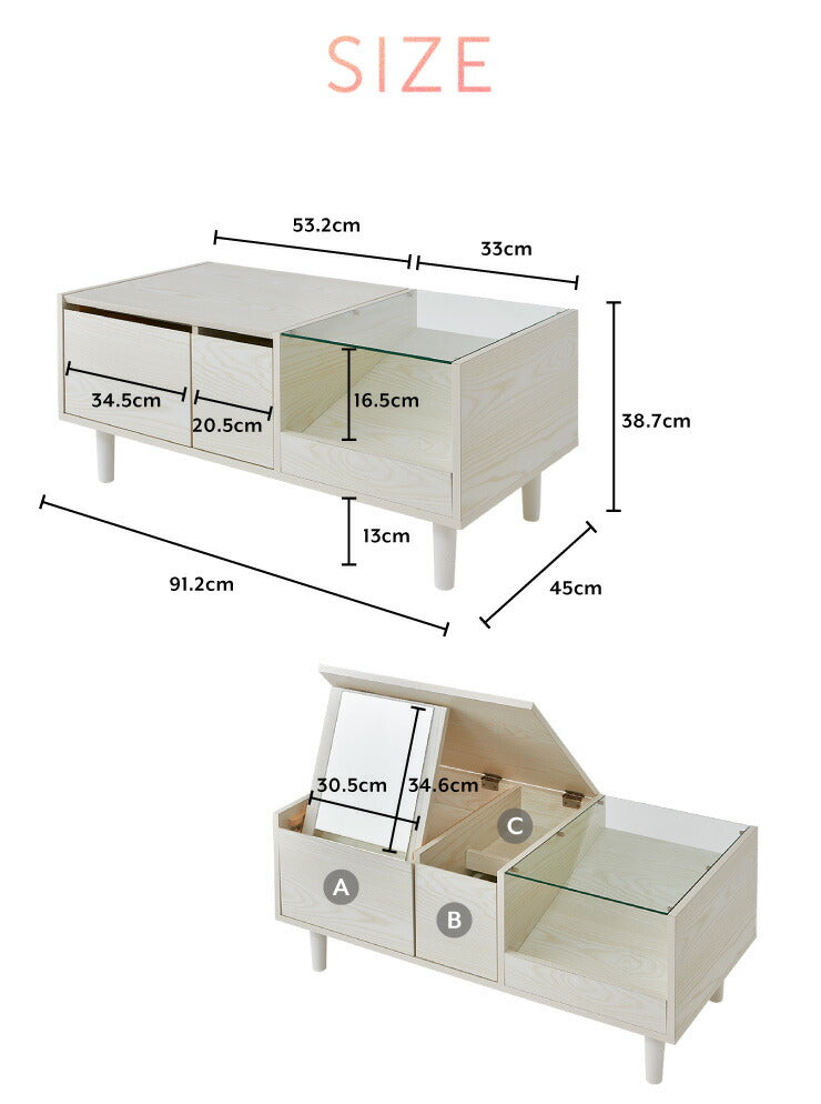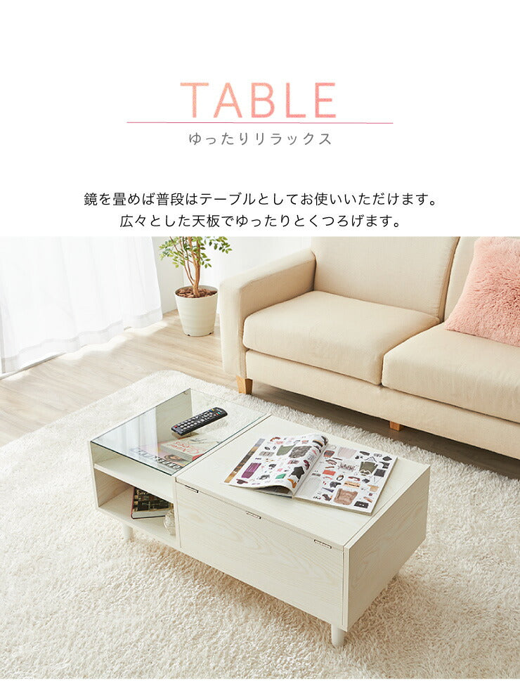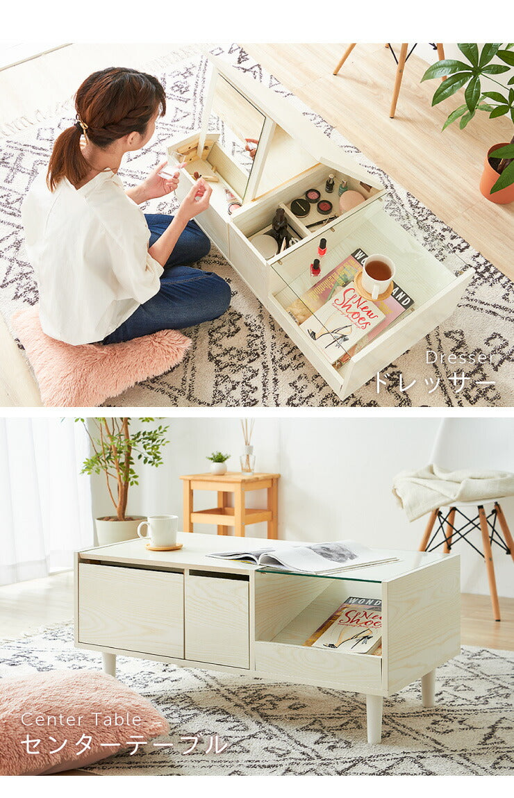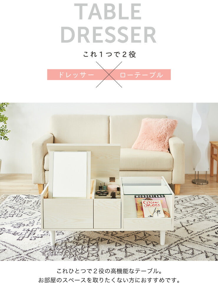 テーブルドレッサー ドレッサー ローテーブル センターテーブル テーブル ロータイプ 鏡台 メイク 化粧台 化粧 ミラー