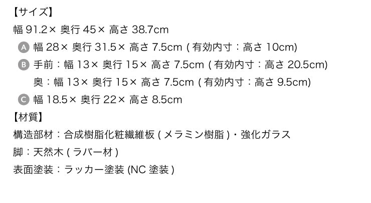 構造部材:合成樹脂化粧繊維板(メラミン樹脂)・強化ガラス