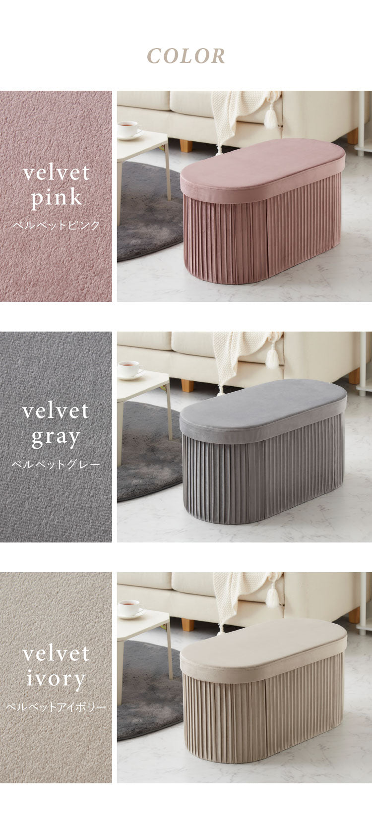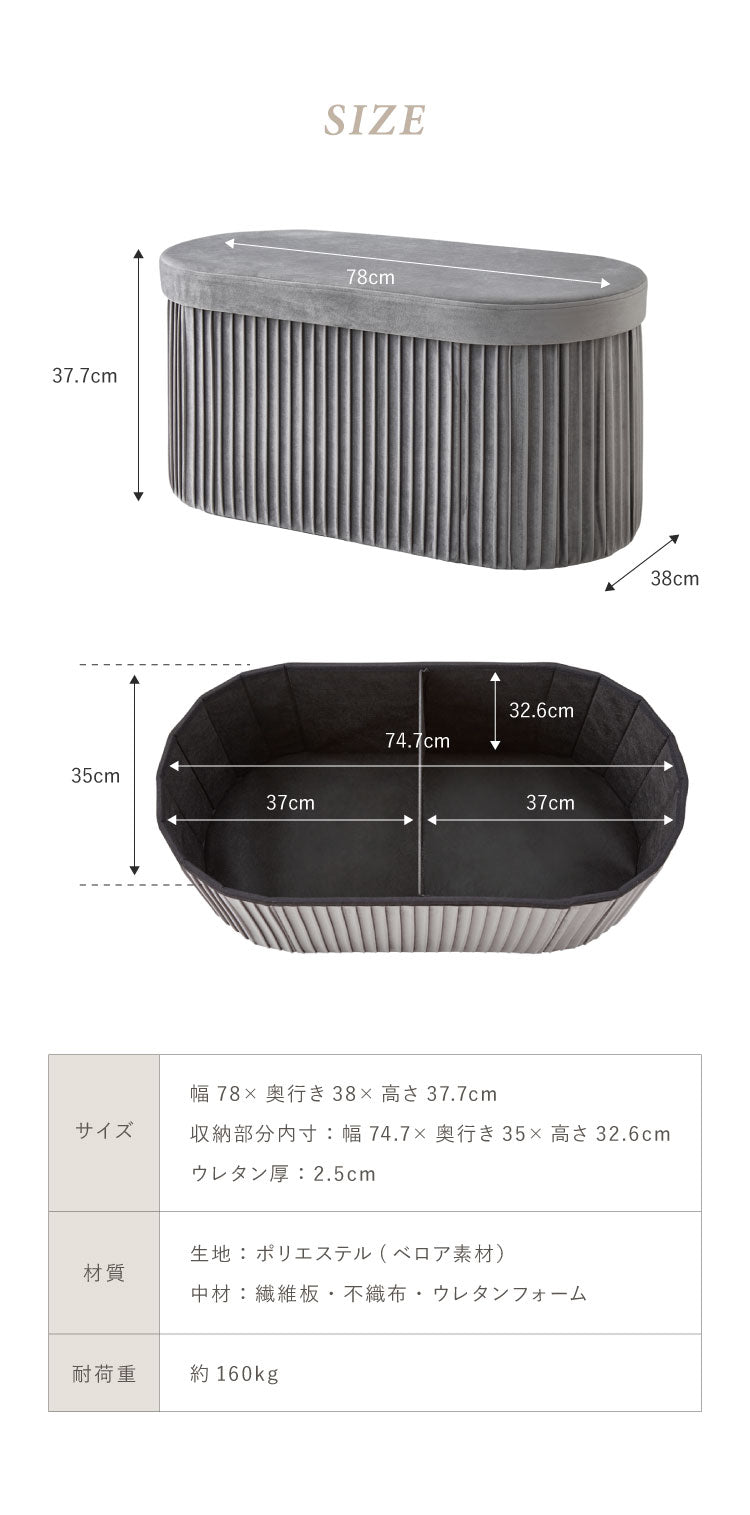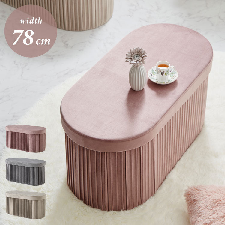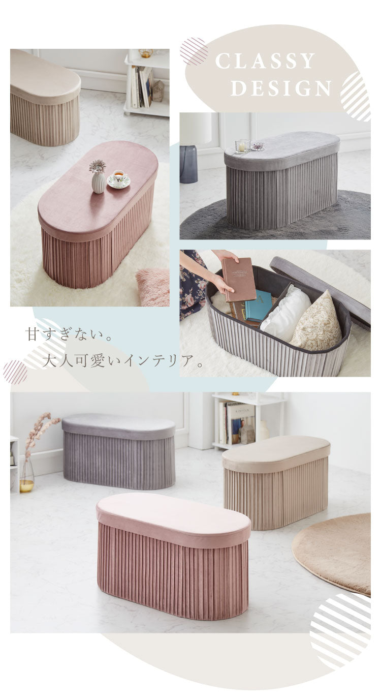 折りたたみ エレガント収納スツール 丸型 ワイド 38×78cm スツール 収納 コンパクト ベルベッド ベロア くすみカラー 折りたたみ ファブリック おしゃれ オットマン 収納スツール 収納ボックス