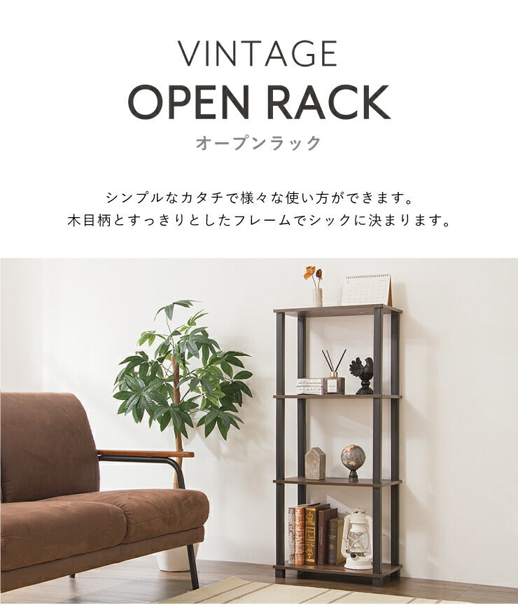 ラック ヴィンテージ調 システムラック 4段 オープンラック 棚 シェルフ 収納 ディスプレイラック 多目的ラック 北欧