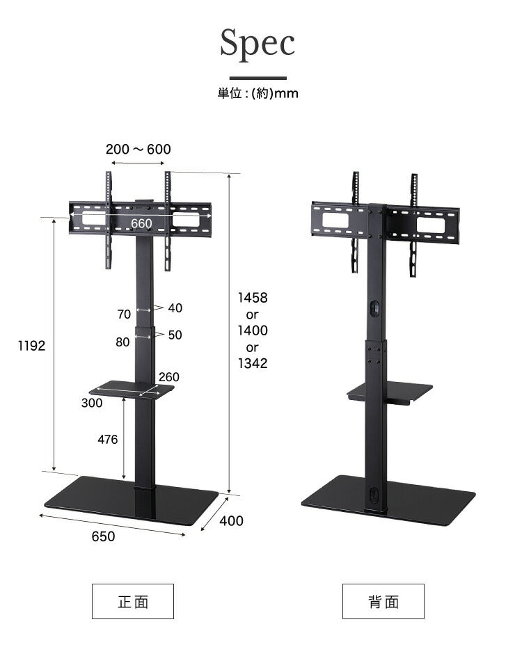 ・支柱の太さ8×5cmとスタイリッシュなテレビスタンドです。