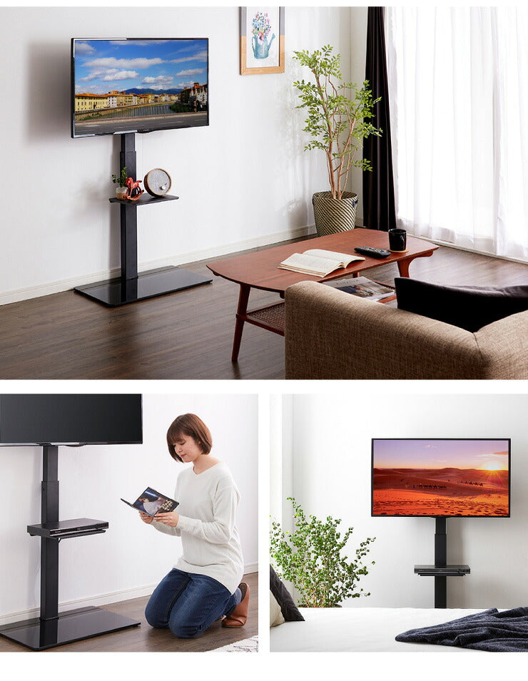 テレビスタンド 37~70型対応 壁寄せ テレビ テレビ台 背面収納 壁寄せテレビスタンド 棚付き ガラス おしゃれ テレビ会議