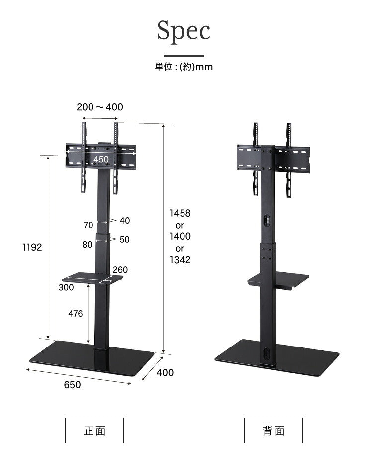 ・支柱の太さ8×5cmとスタイリッシュなテレビスタンドです。