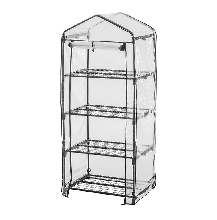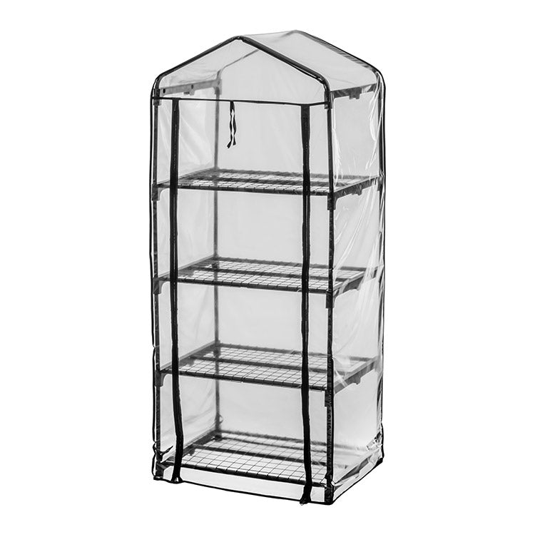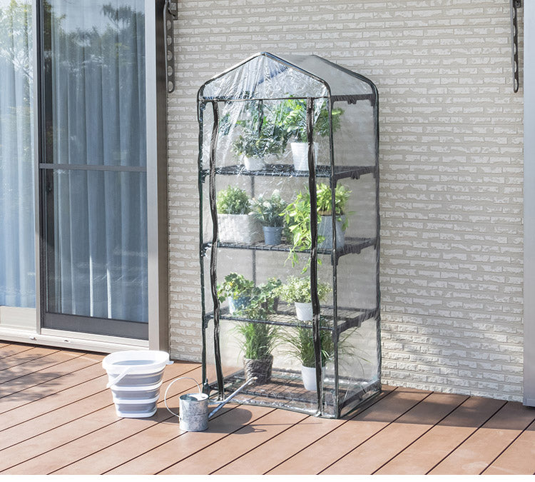 ビニール温室 4段 ブラック 組み立て簡単 工具不要 ビニール温室棚 4段ラック ビニールハウス フラワーラック ガーデンハウス フラワーハウス ラック ベランダ 家庭用 園芸 栽培 コンパクト 小型