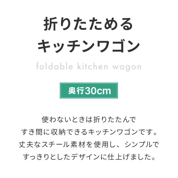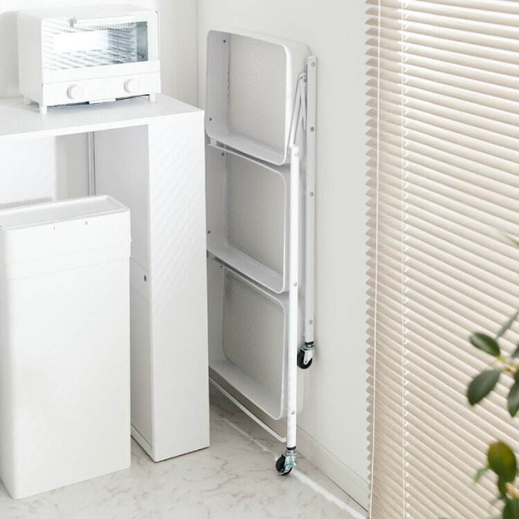 キッチンワゴン 折りたためるワゴン 3段 幅48cm キャスター付き 折りたたみ ワゴン スチールワゴン ワゴン ラック キッチンラック すき間収納 キャスター スチール すきま 隙間 コンパクト