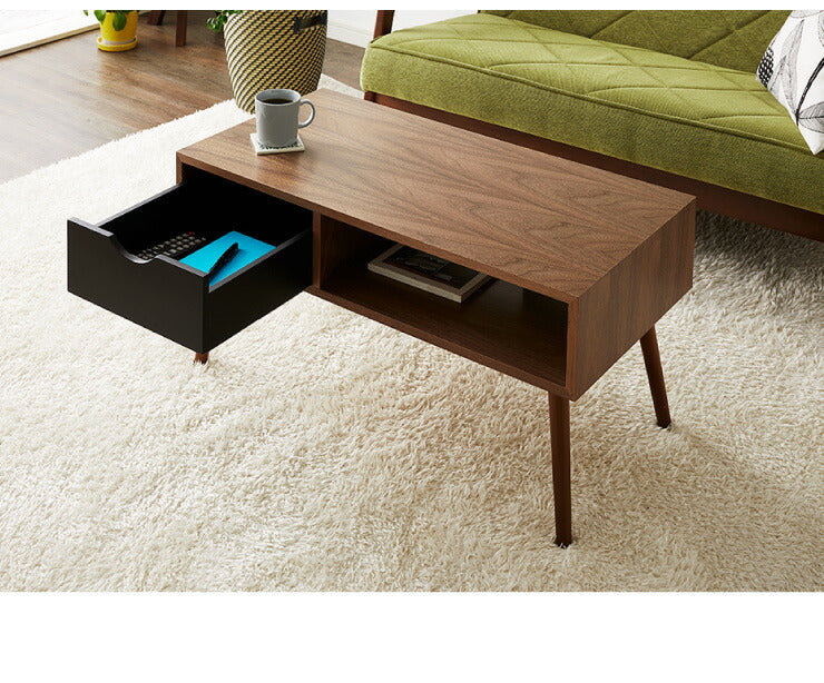 木製 カフェテーブル 引き出し付き 80×40 テーブル 収納 引き出し おしゃれ センターテーブル 長方形 天然木突板 ローテーブル