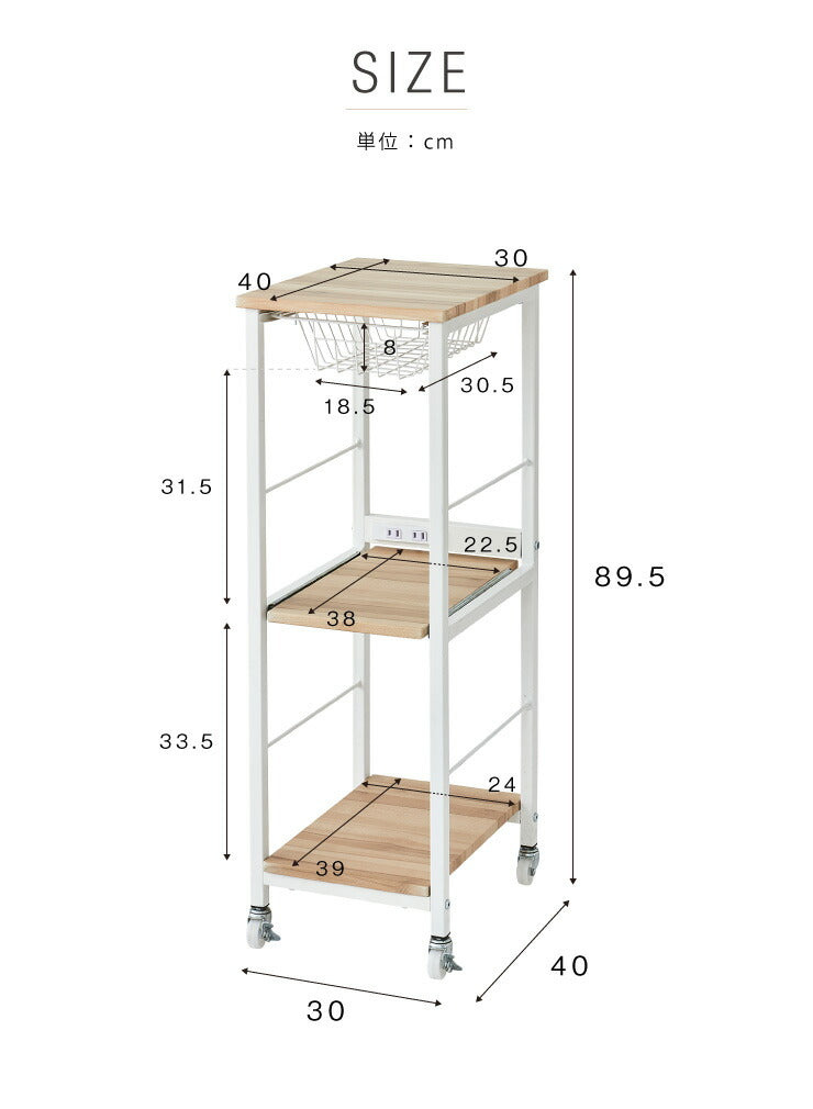 すき間収納 ヴィンテージ調 キッチンワゴン スリム 幅30cm かご コンセント キャスター付き キッチン収納 すきま 収納 台所収納
