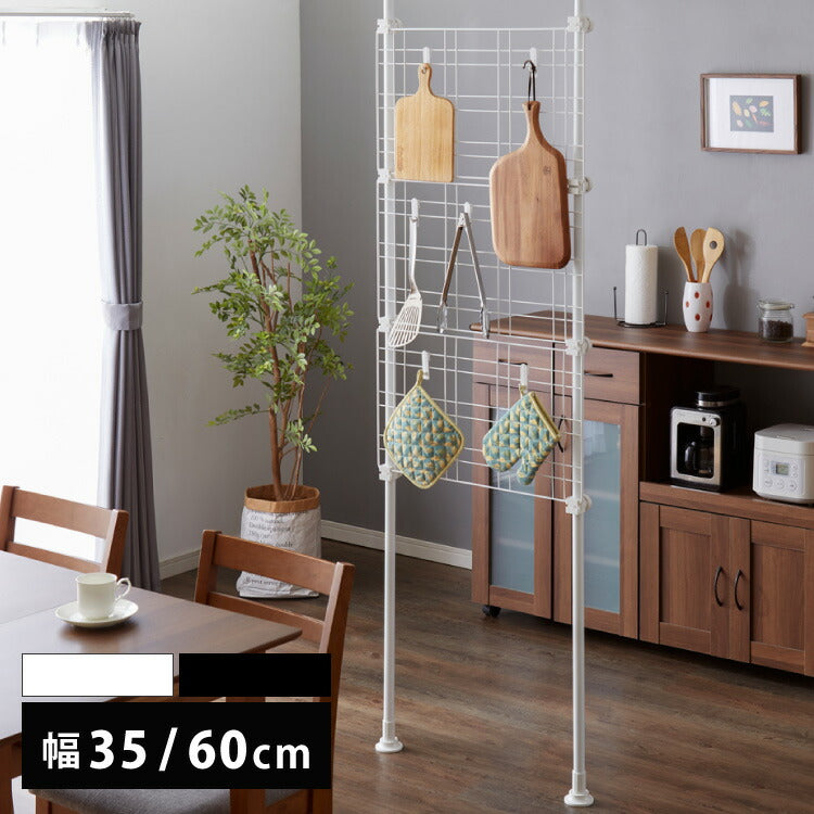 突っ張り パーテーション 2WAY 幅35/60 フック6個付き つっぱり ラック 突っ張り ワイヤーネット 突っ張りラック 突っ張りパーテーション パーテーション スクリーン メッシュハンガーラック 隙間収納