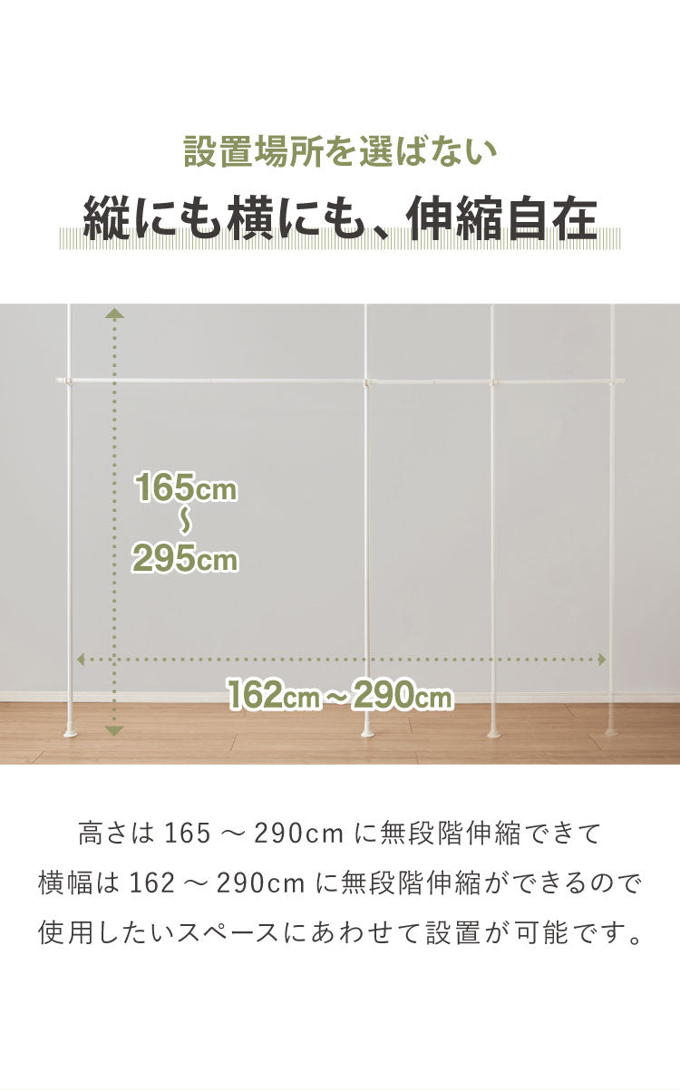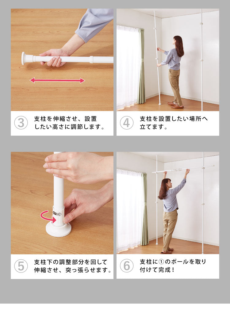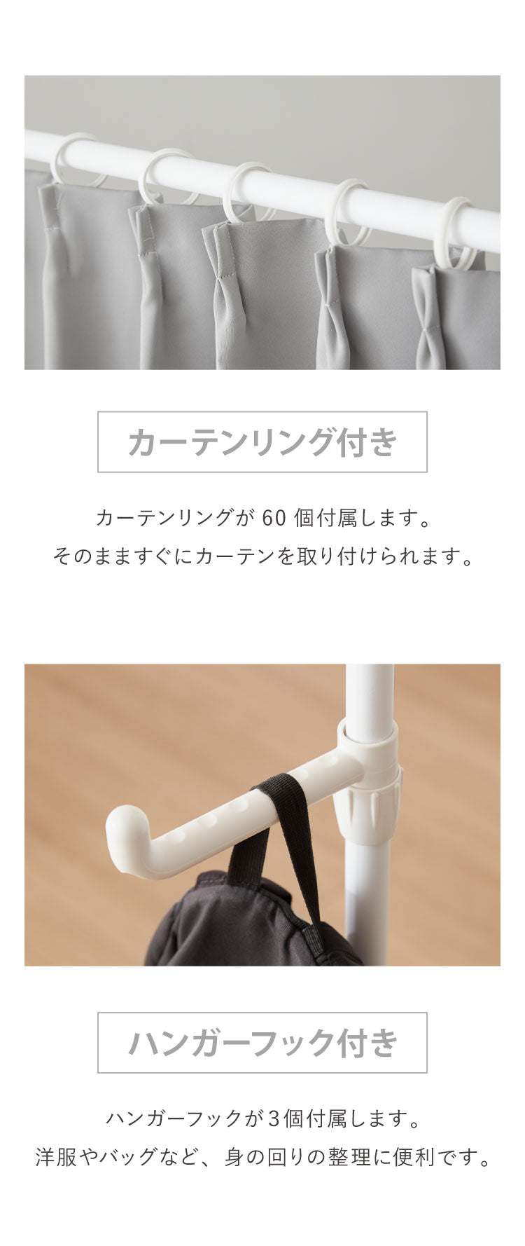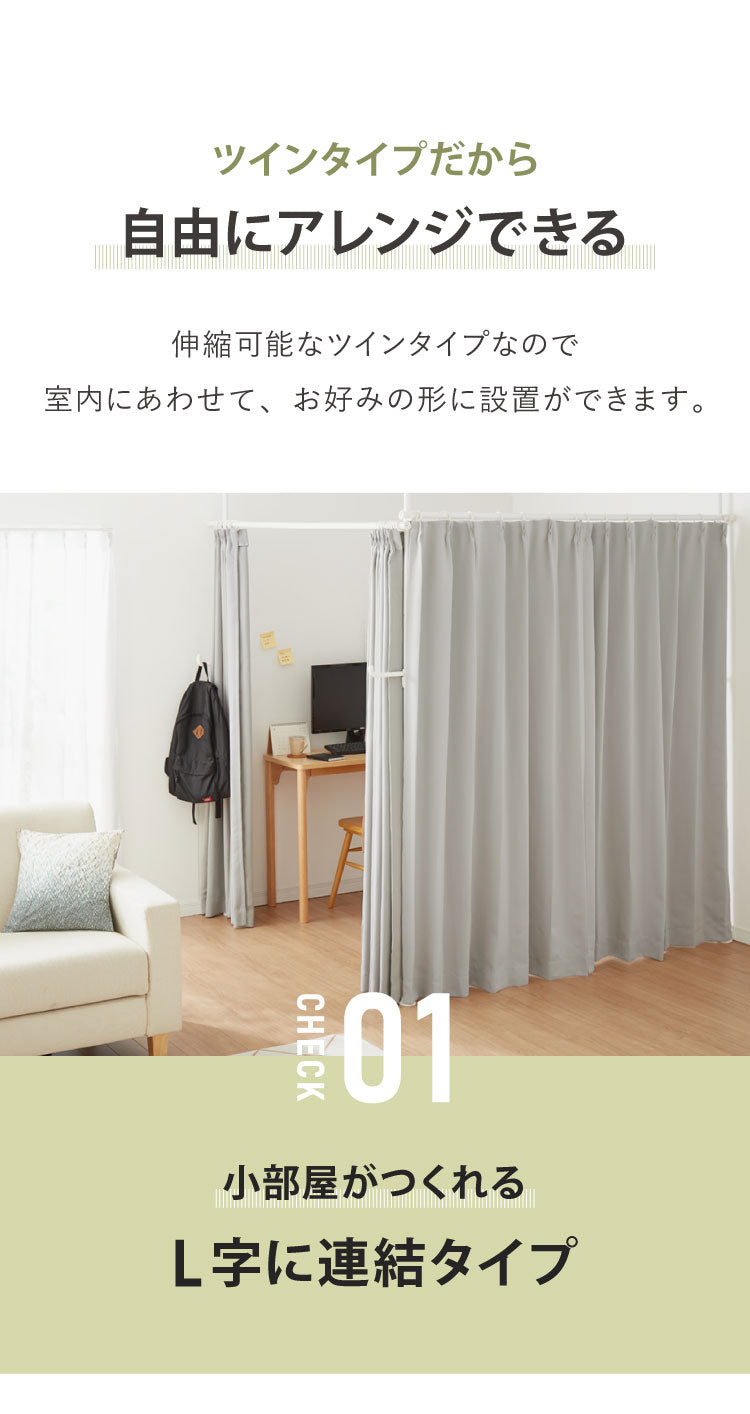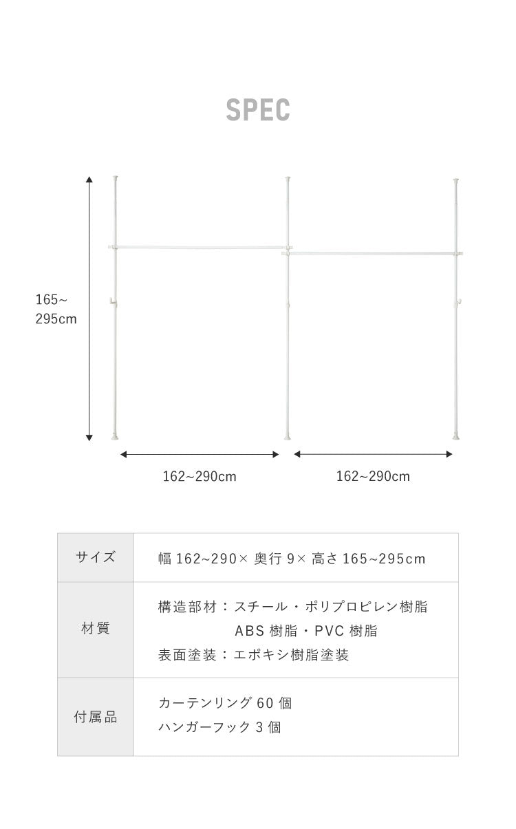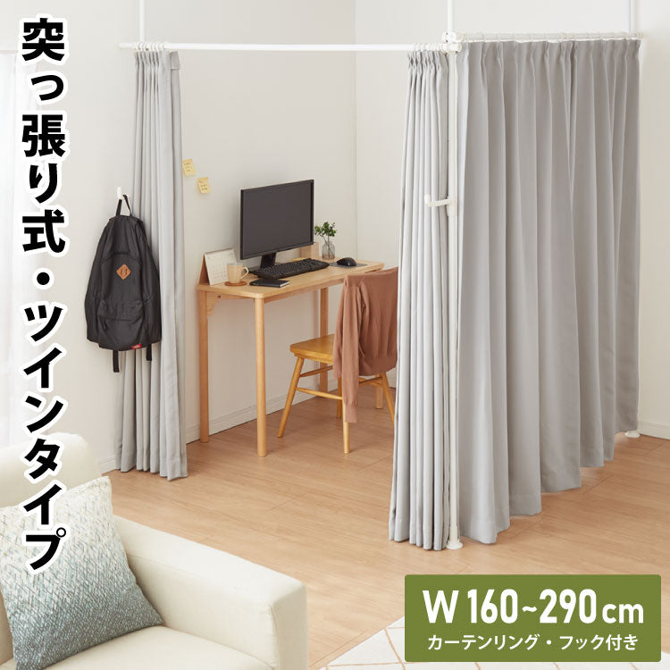 間仕切り 突っ張りカーテンポール ツインタイプ 縦横伸縮 カーテンレール 簡単突っ張りカーテンポール 突っ張り つっぱり ポール 穴あけ不要 リング付き カーテン 仕切り 在宅ワーク 目隠し