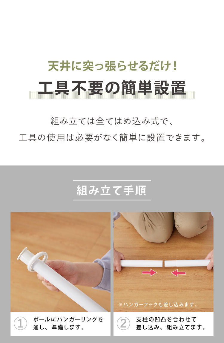 ・工具不要で簡単設置可能な突っ張りカーテンロールハンガー