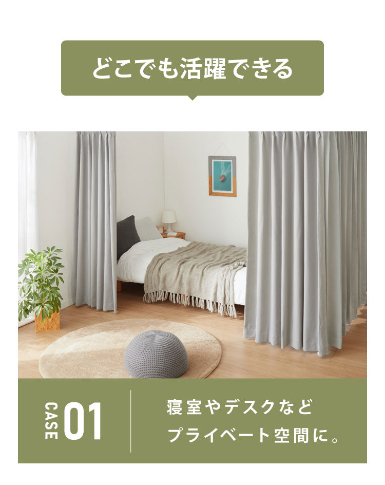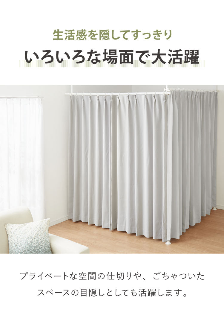 ・お部屋の間仕切りや目隠しに最適なカーテンを簡単に設置