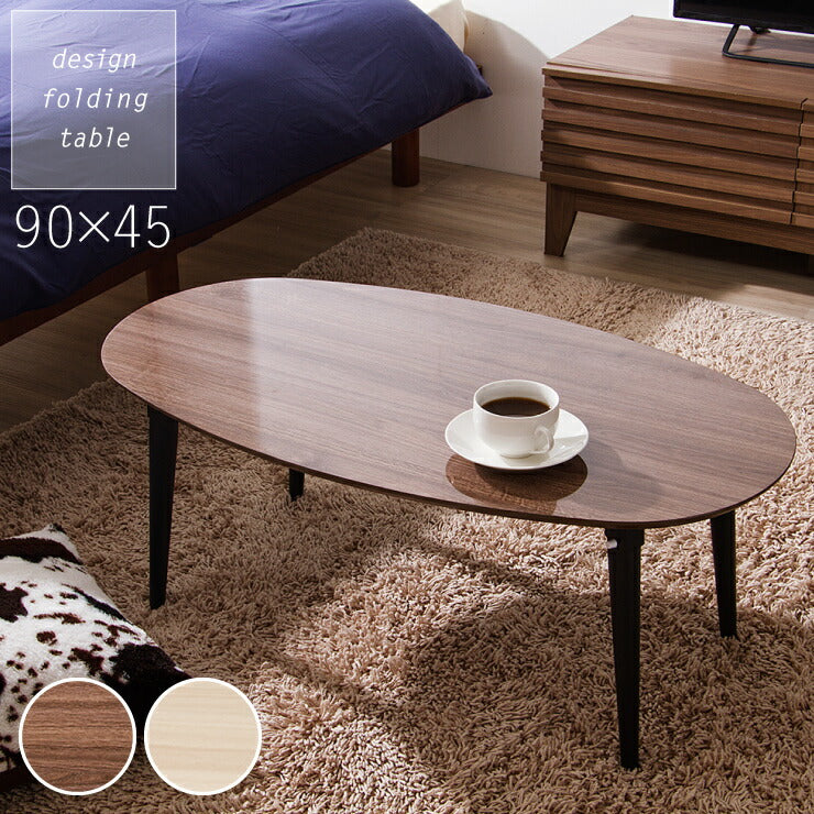 折りたたみテーブル 木目調 90×45cm 鏡面仕上げ 韓国インテリア 北欧 おしゃれ オーバル 折り畳み 収納 省スペース コンパクト テーブル センターテーブル ローテーブル 木製 コーヒーテーブル リビングテーブル 一人暮らし 新生活