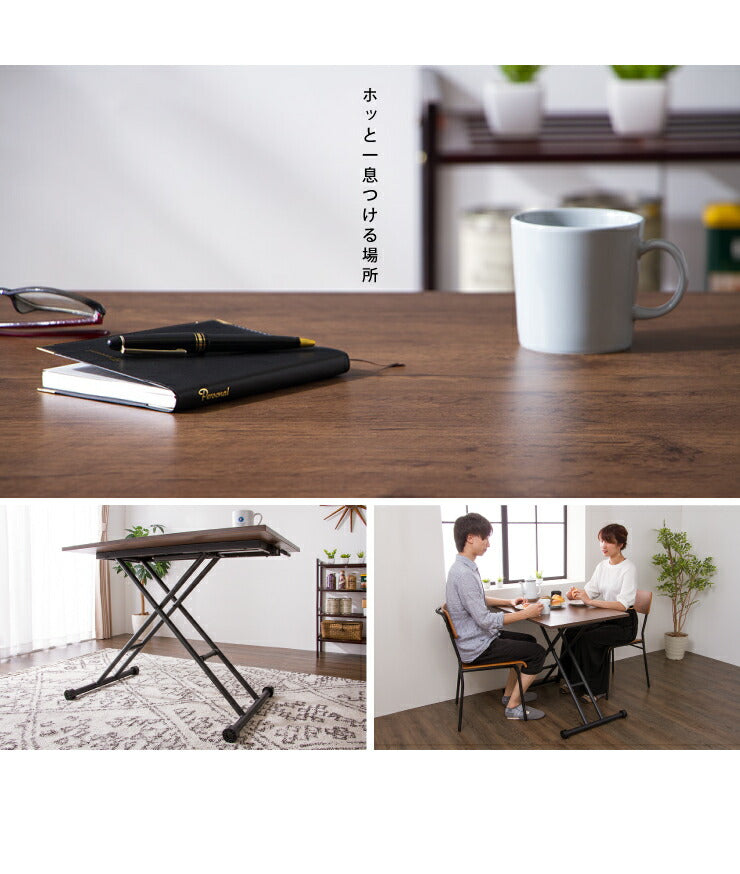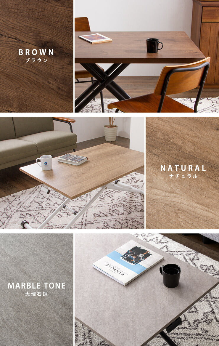テーブル 昇降式 ガス圧昇降式テーブル 90×60cm ブラウン ナチュラル 大理石調 おしゃれ シンプル 昇降テーブル ダイニングテーブル センターテーブル ローテーブル リビングテーブル デスク 高さ調節