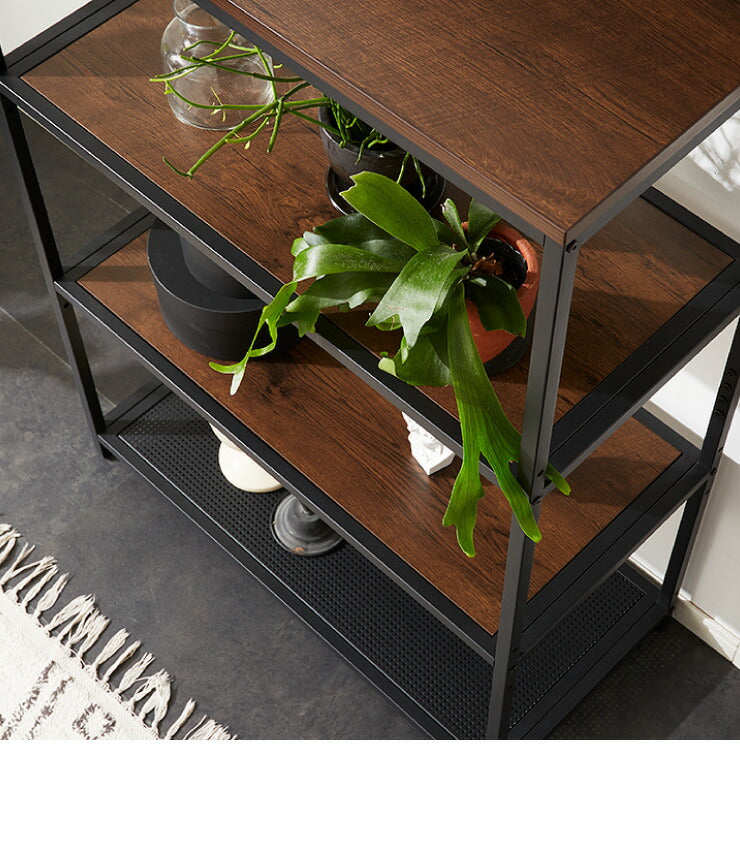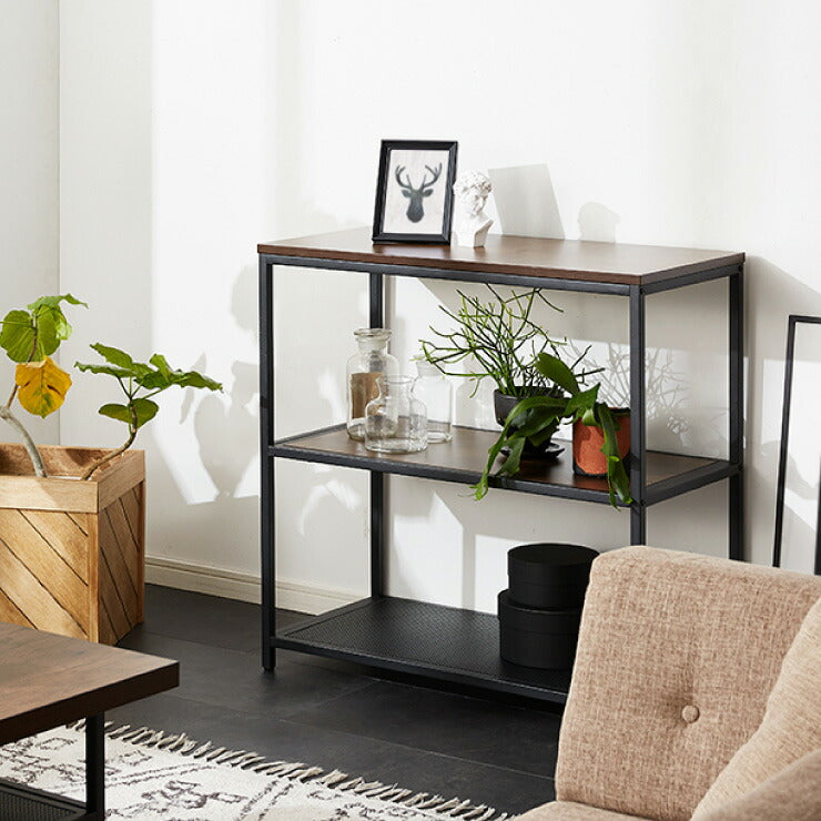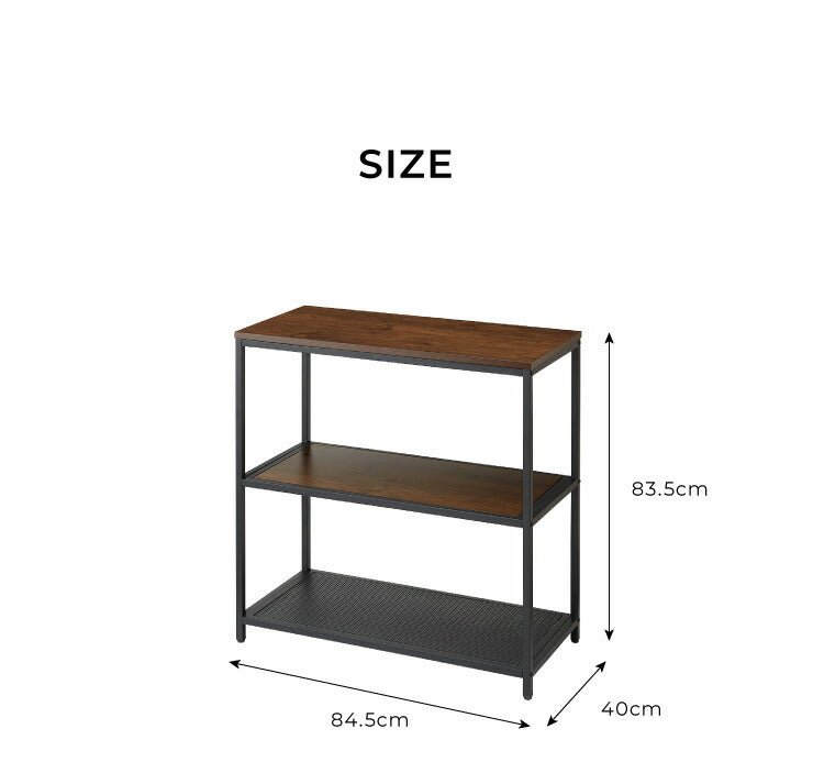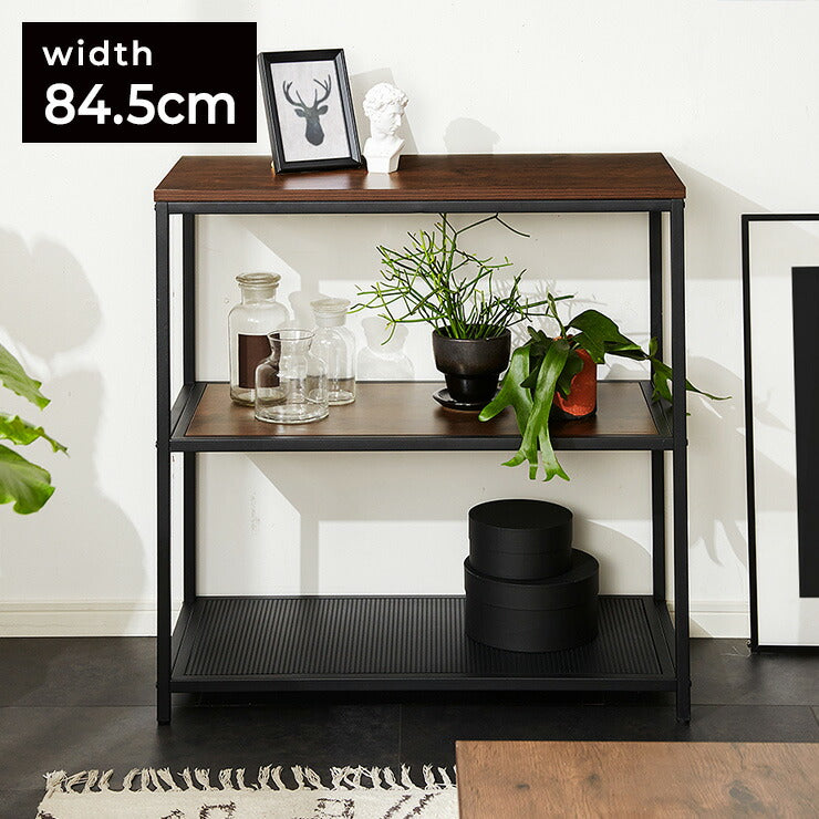 【在庫処分】スチールラック 3段 幅85cm 奥行40cm 高さ84cm 木目 スチール 高耐久性 ブラック ヴィンテージ調 モダン シンプル おしゃれ ラック シェルフ オープンラック アイアンシェルフ 本棚 収納棚 棚