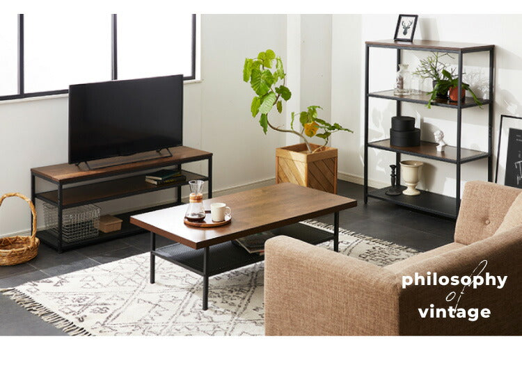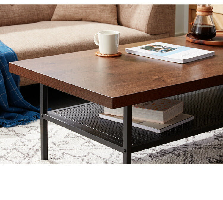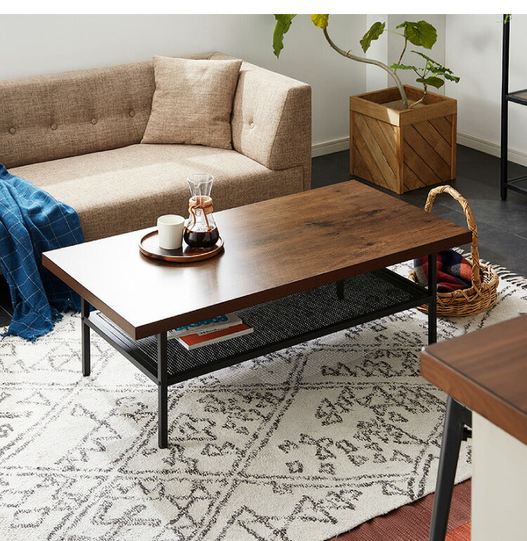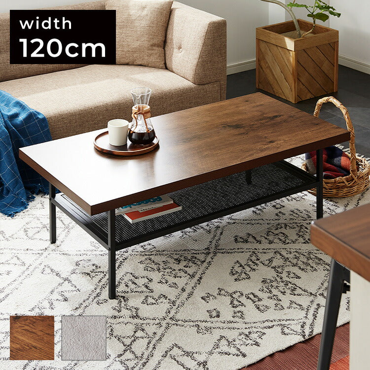 ローテーブル 幅120cm 長方形 収納棚 木目 アイアン ブラウン おしゃれ シンプル ヴィンテージ調 一人暮らし リビング センターテーブル テーブル リビングテーブル コーヒーテーブル 収納