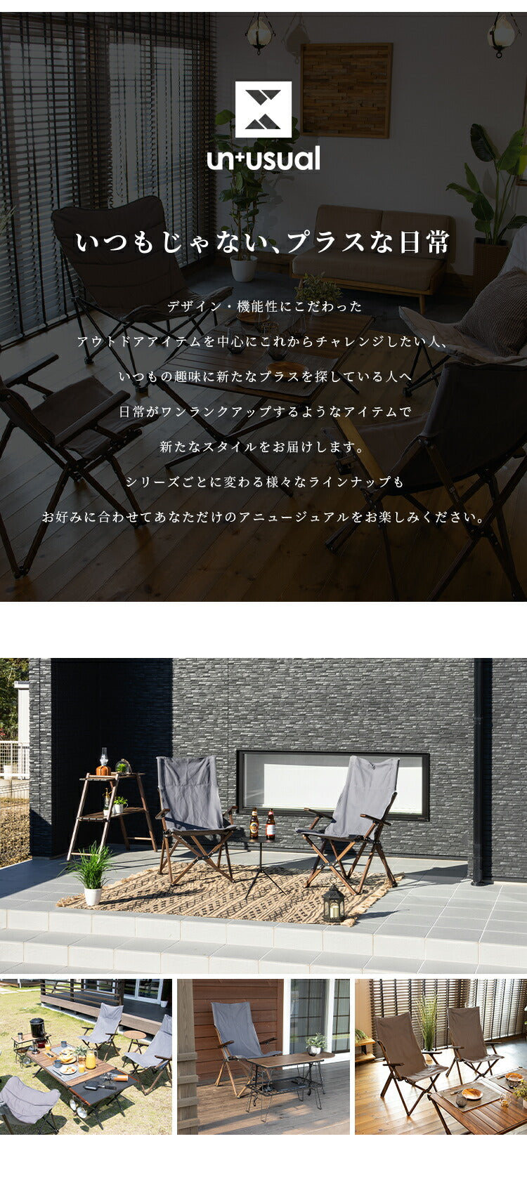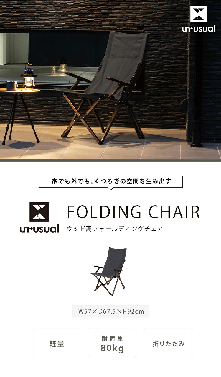 リラックスチェア UN+USUAL アニュージュアル 折りたたみウッド調フォールディングチェア アルミフレーム 肘付き アームチェア リラックスチェア 折りたたみ ガーデンチェア アウトドアリビング