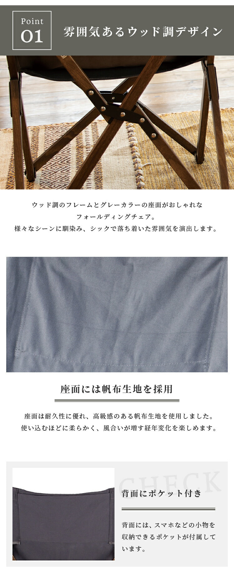 ウッド調 フォールディングチェア