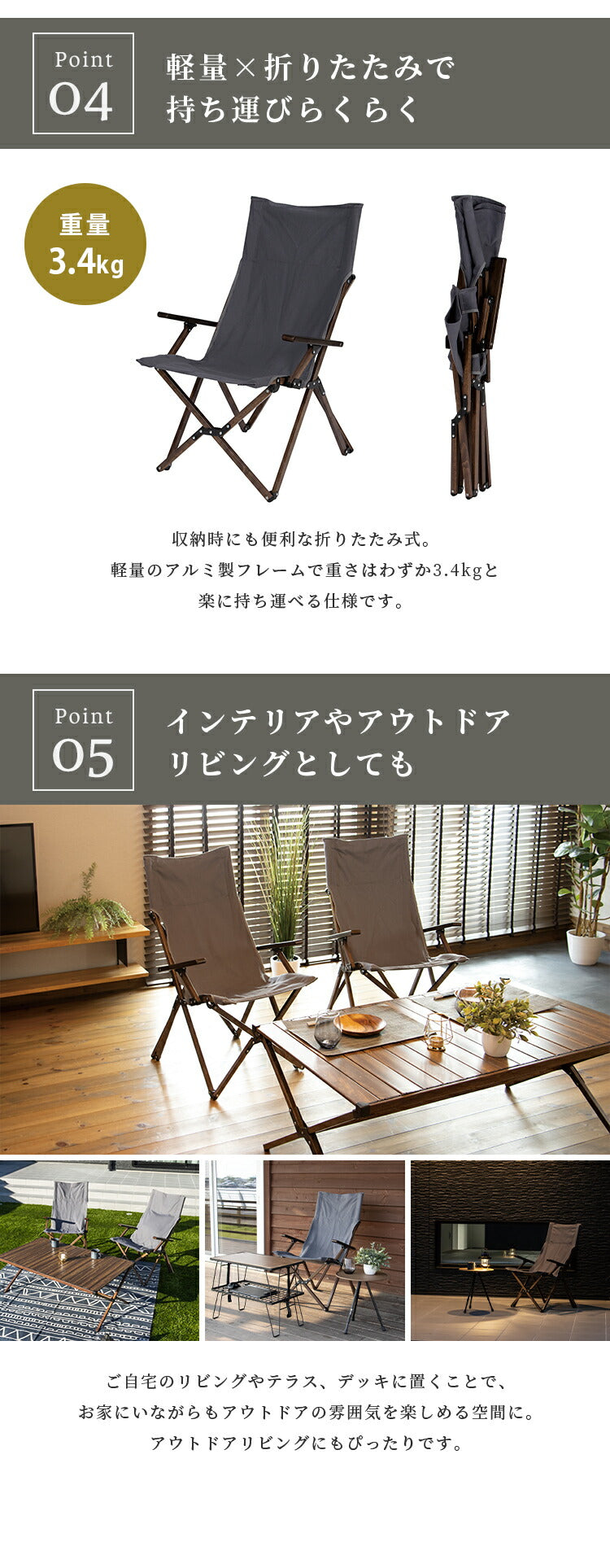 ・アウトドアでもリビングでも活躍できる製品です。