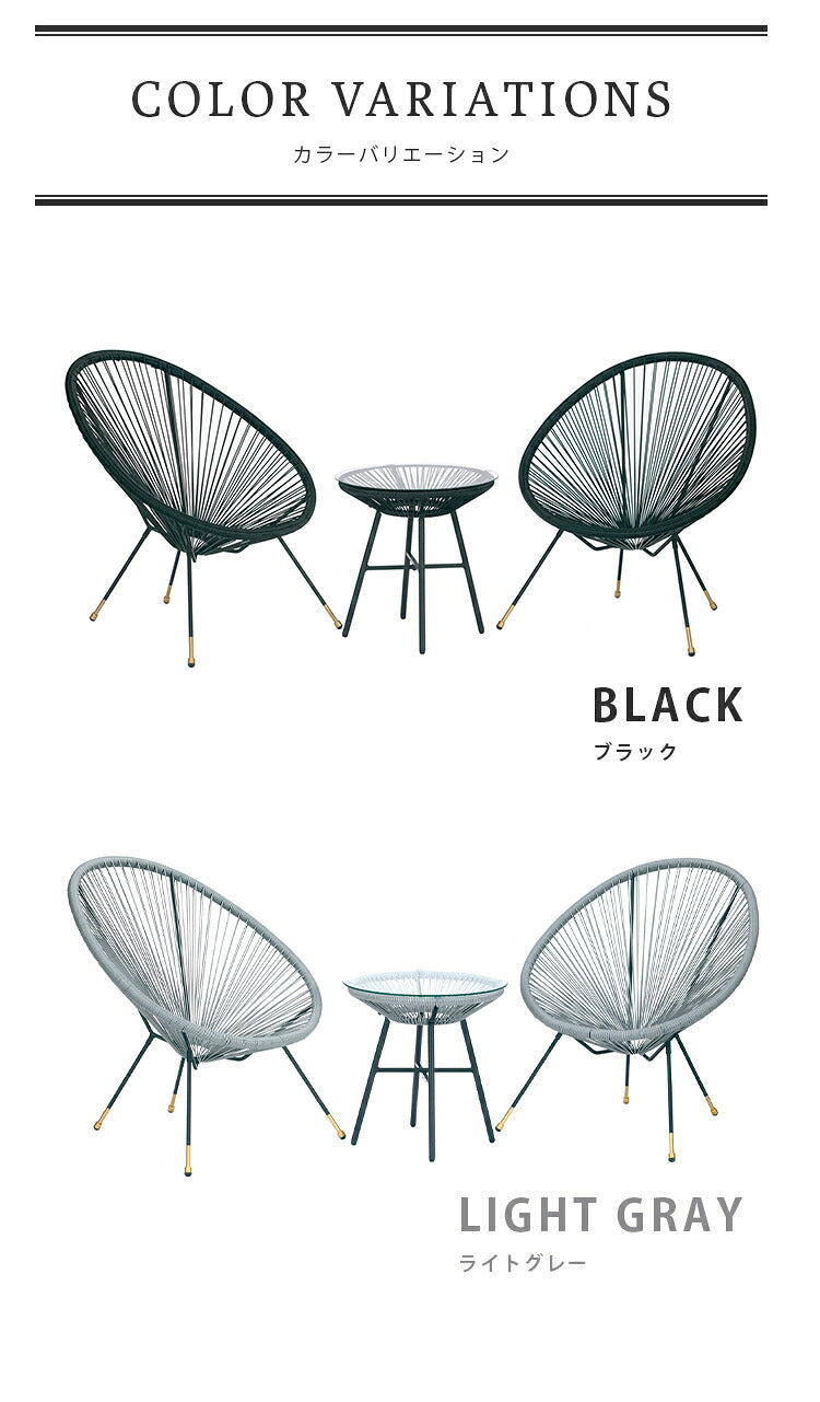 ラウンジチェア セット UN+USUAL アニュージュアル ガーデンテーブル&チェア 3点セット ガラステーブル付き パーソナルチェア アカプルコチェア ゴールド 1人掛け チェア 椅子 ベランダ