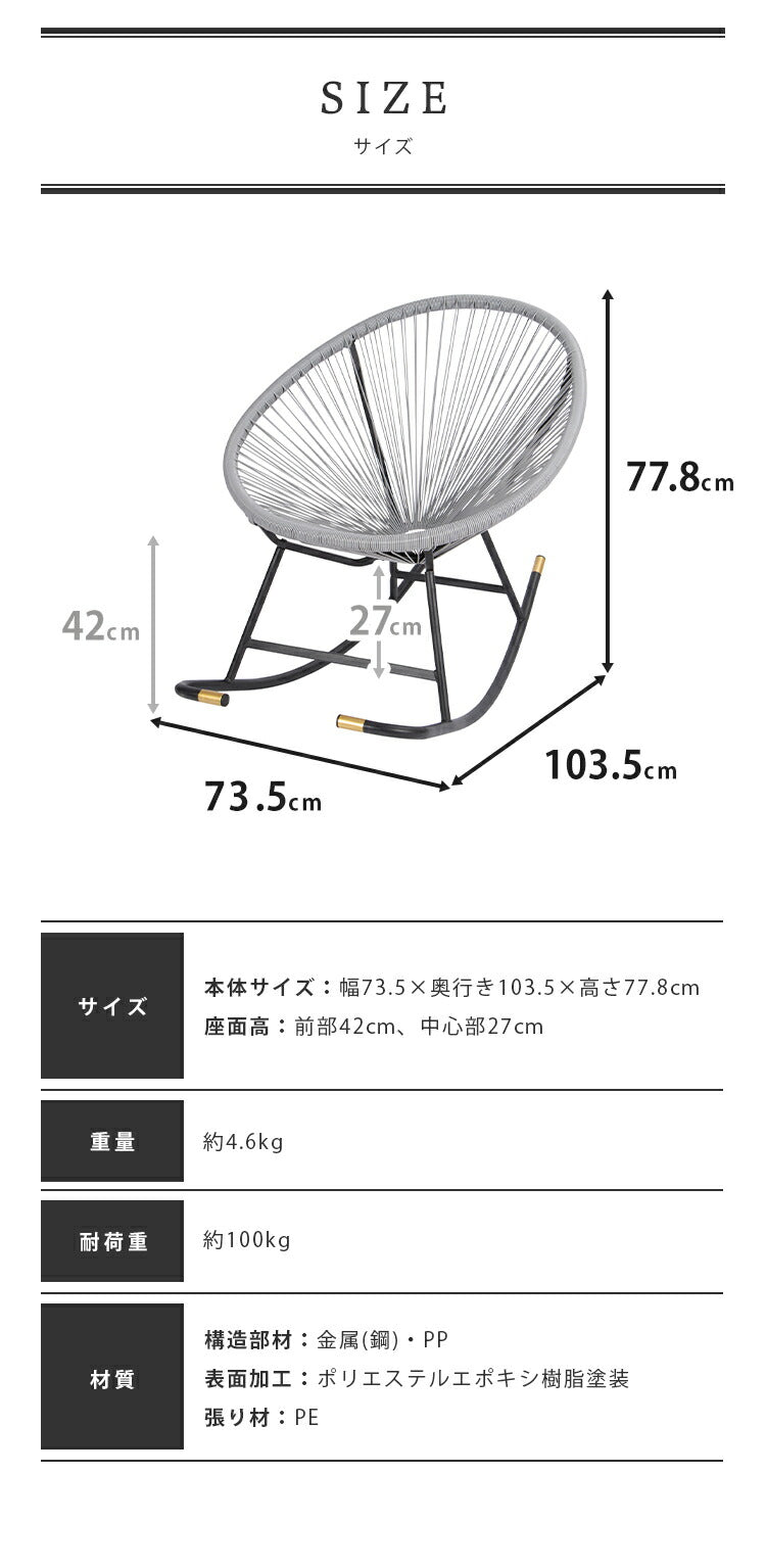 パーソナルチェア UN+USUAL アニュージュアル ロッキングチェア アウトドアチェア アカプルコチェア 1人掛け 一人 掛け チェア 椅子 イス 1P ガーデンチェア アウトドアリビング