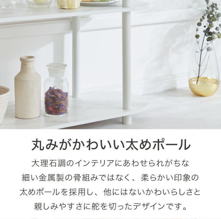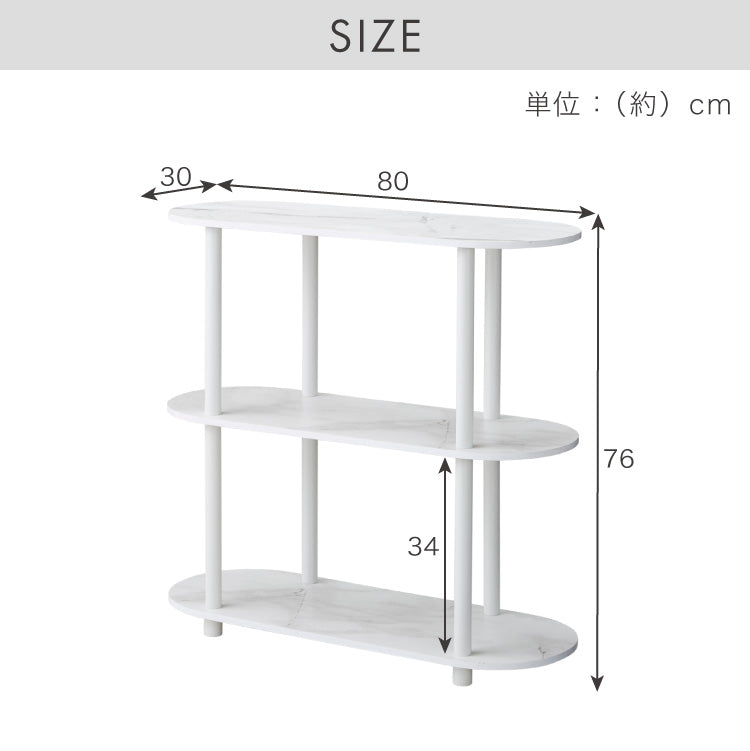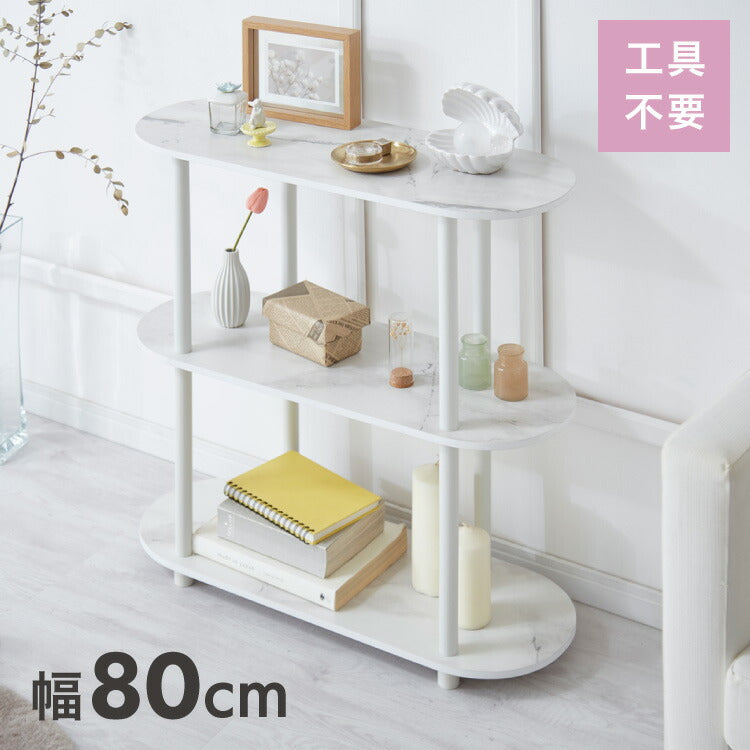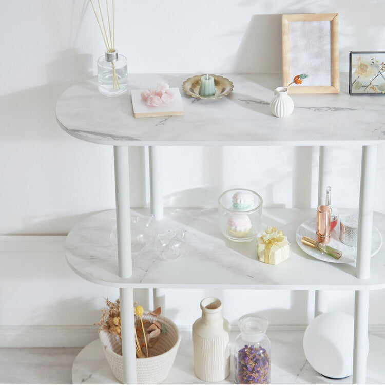 楕円型 オープンラック 組み立て簡単 おしゃれな大理石柄 幅80 3段 ラック システムラック おしゃれ かわいい 韓国インテリア オープンラック 楕円型 棚 シェルフ ディスプレイラック 多目的ラック