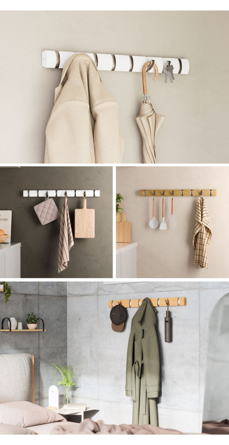 umbra アンブラ フック 8連 フリップフック フック ウォールハンガー ハンガーフック マルチフック ハンガー 収納 壁面収納 壁付け ホワイト ナチュラル 北欧 おしゃれ 幅81cm 奥行3.5cm 高さ6.5cm