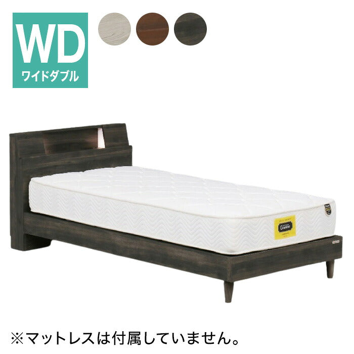 【フレームのみ】ベッド ワイドダブル 棚付き 2灯照明 2口コンセント 脚付き サミール 高さ調節 幅木よけ シンプル モダン ローベッド グランツ Granz おしゃれ(代引不可)