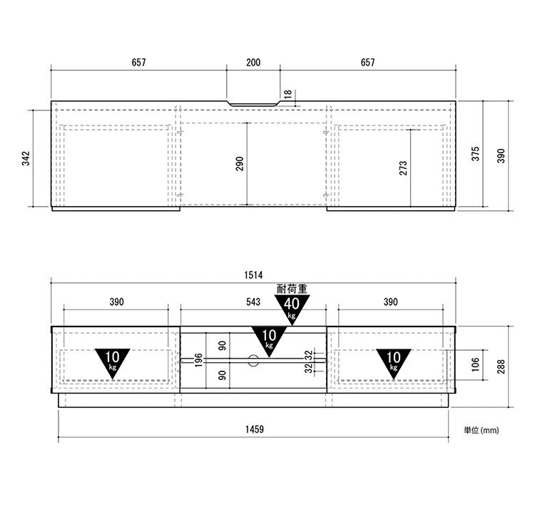 オープンスペースには棚板を設置出来・AV機器を収納出来ます。